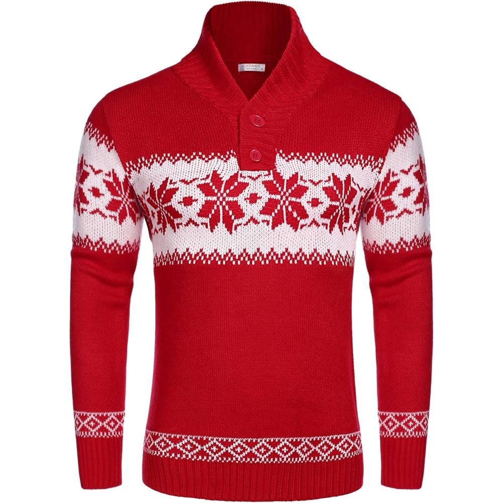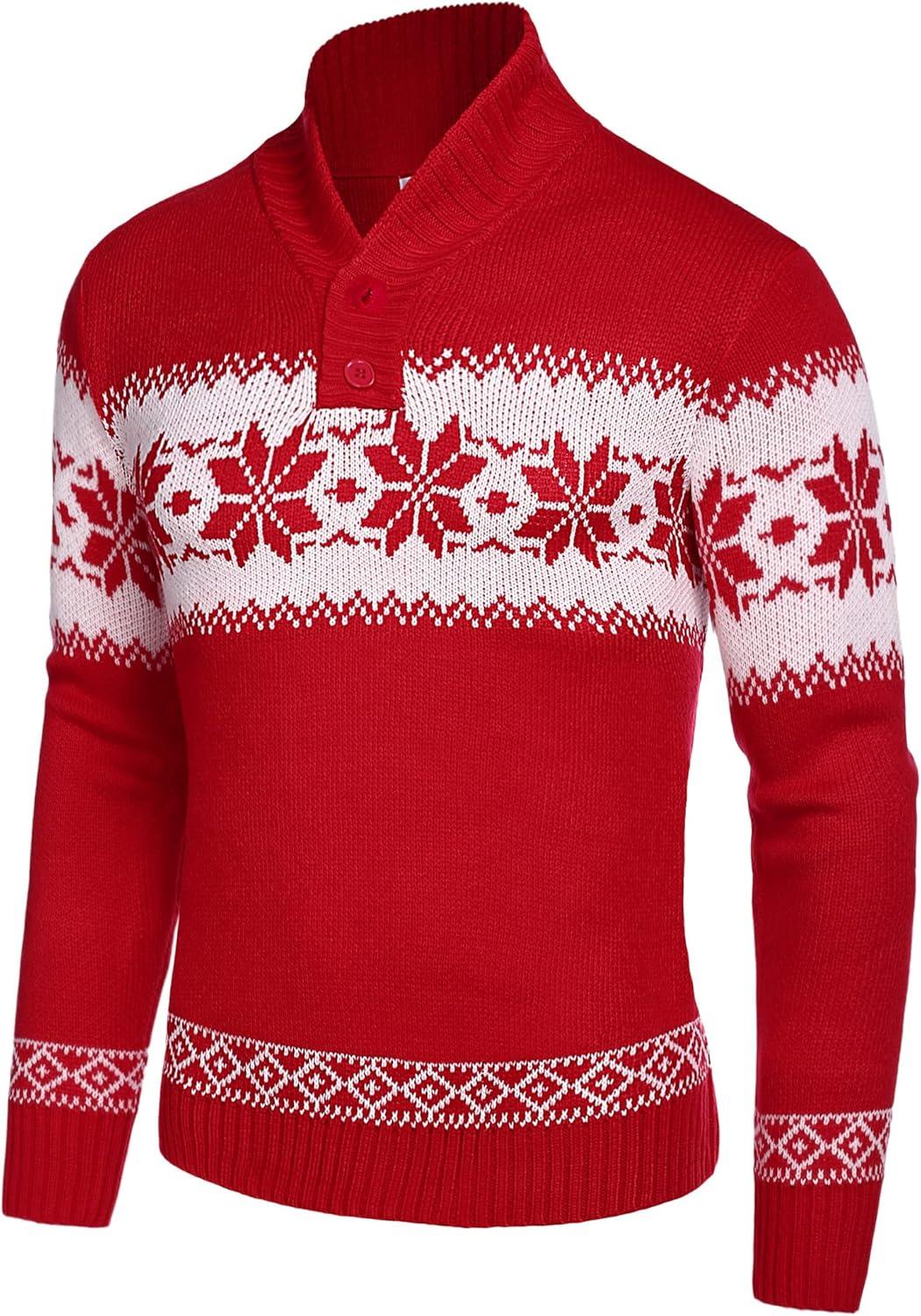 COOFANDY Men's Christmas Sweater Ugly Knitted Xmas Sweaters Casual Snowflake Pullover Knitwear(A-red)