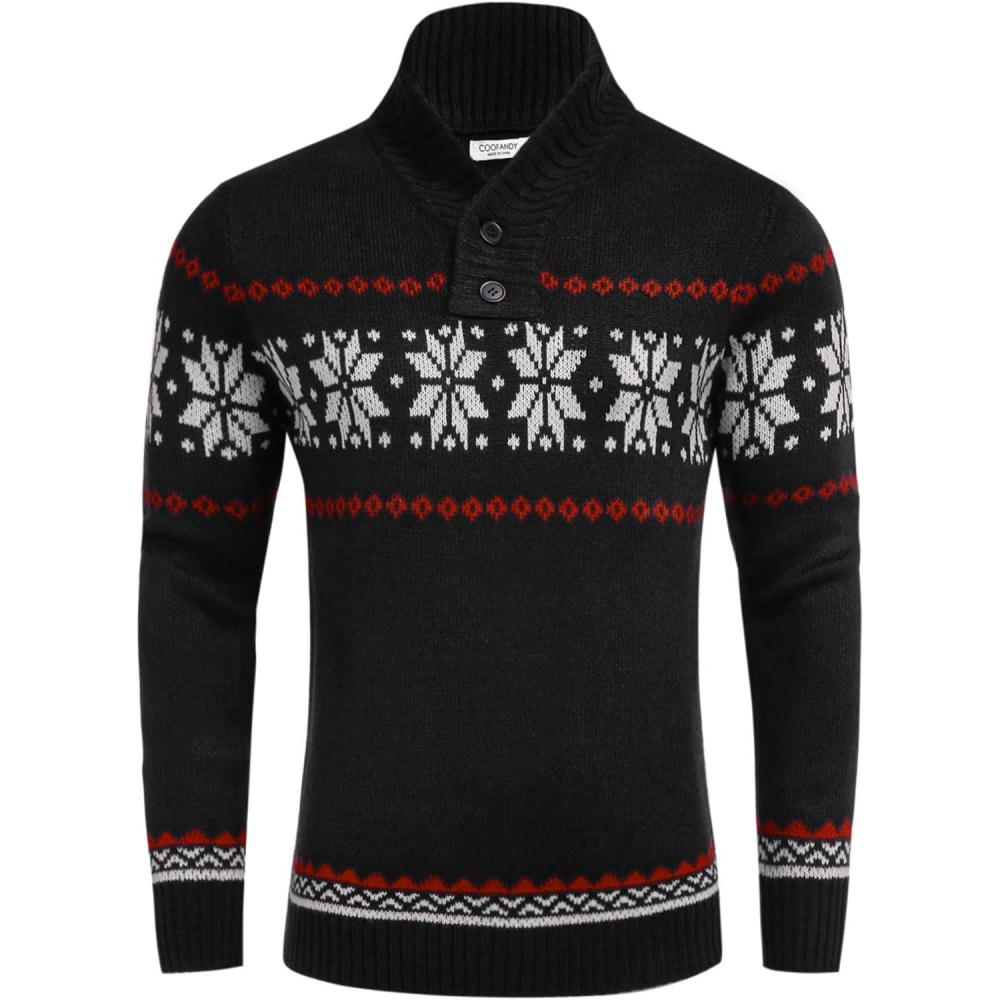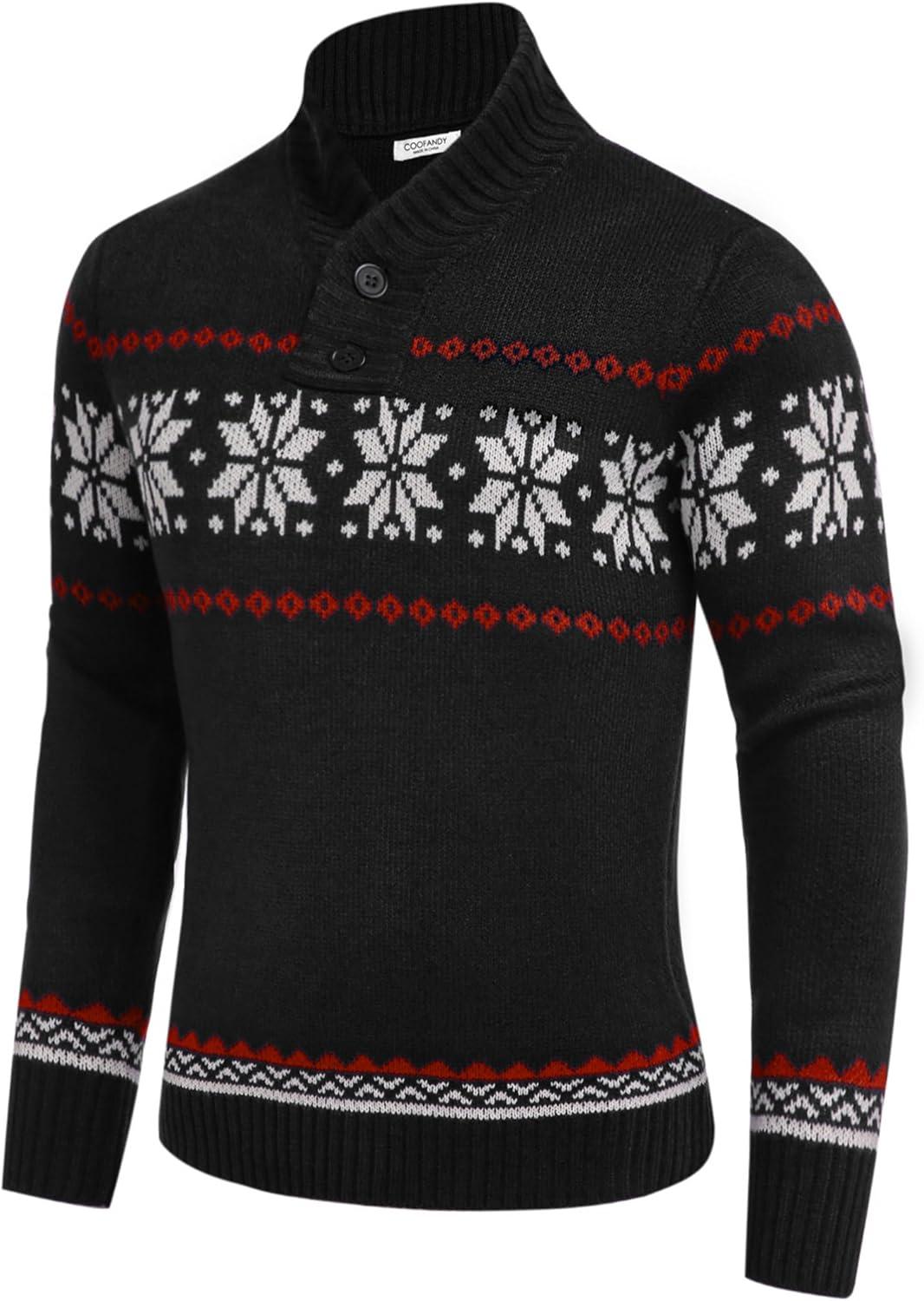 COOFANDY Men’s Christmas Sweater Ugly Knitted Xmas Sweaters Casual Snowflake Pullover Knitwear(Black)