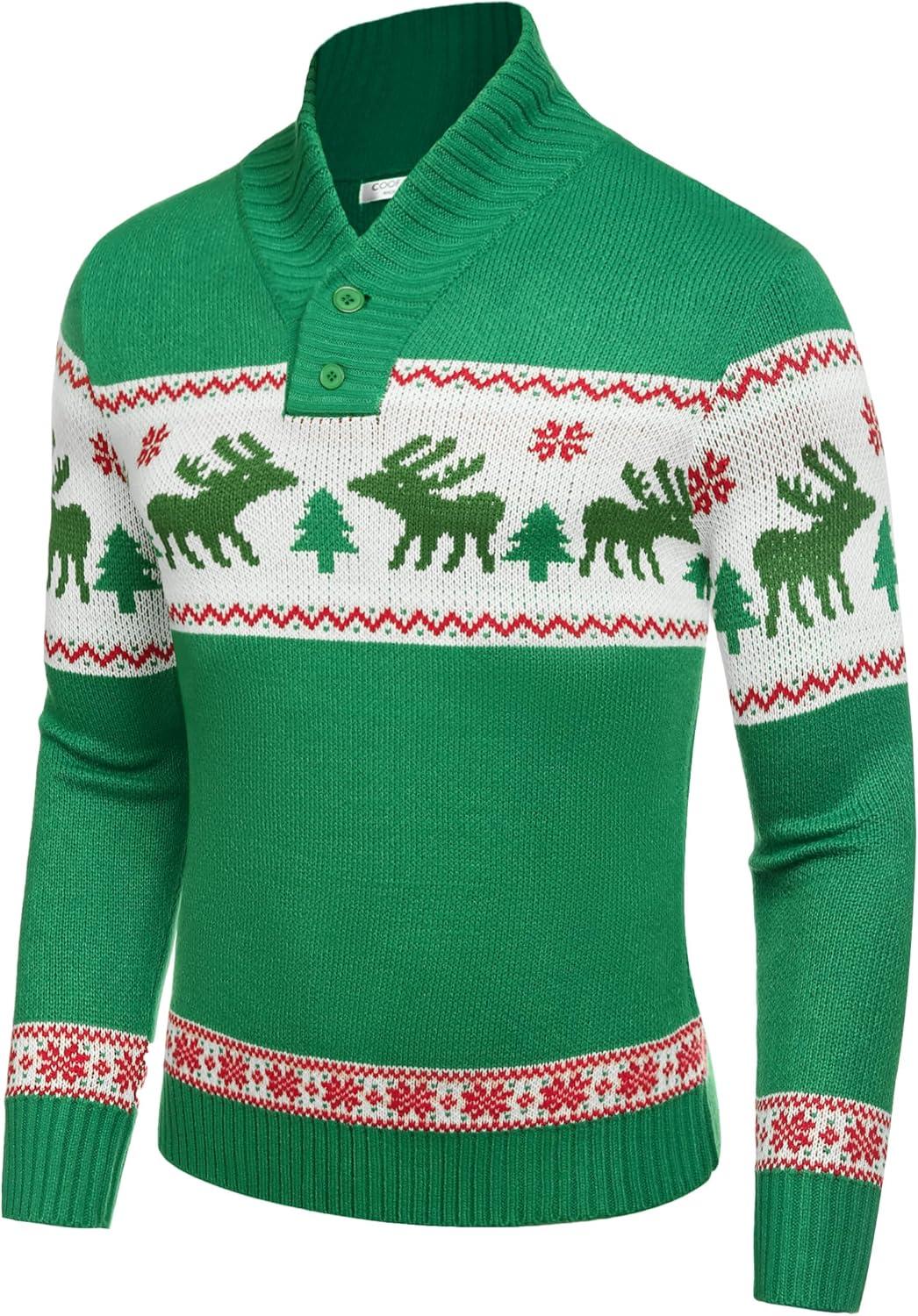 COOFANDY Men's Christmas Sweater Ugly Knitted Xmas Sweaters Casual Snowflake Pullover Knitwear(Christmas Green)