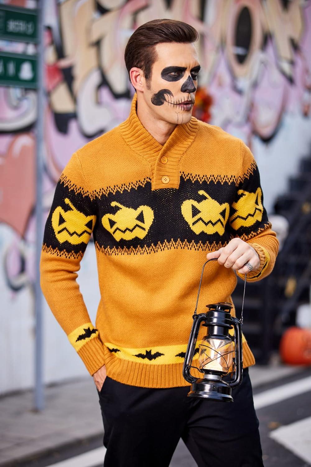 COOFANDY Men's Christmas Sweater Ugly Knitted Xmas Sweaters Casual Snowflake Pullover Knitwear(Pumpkin)
