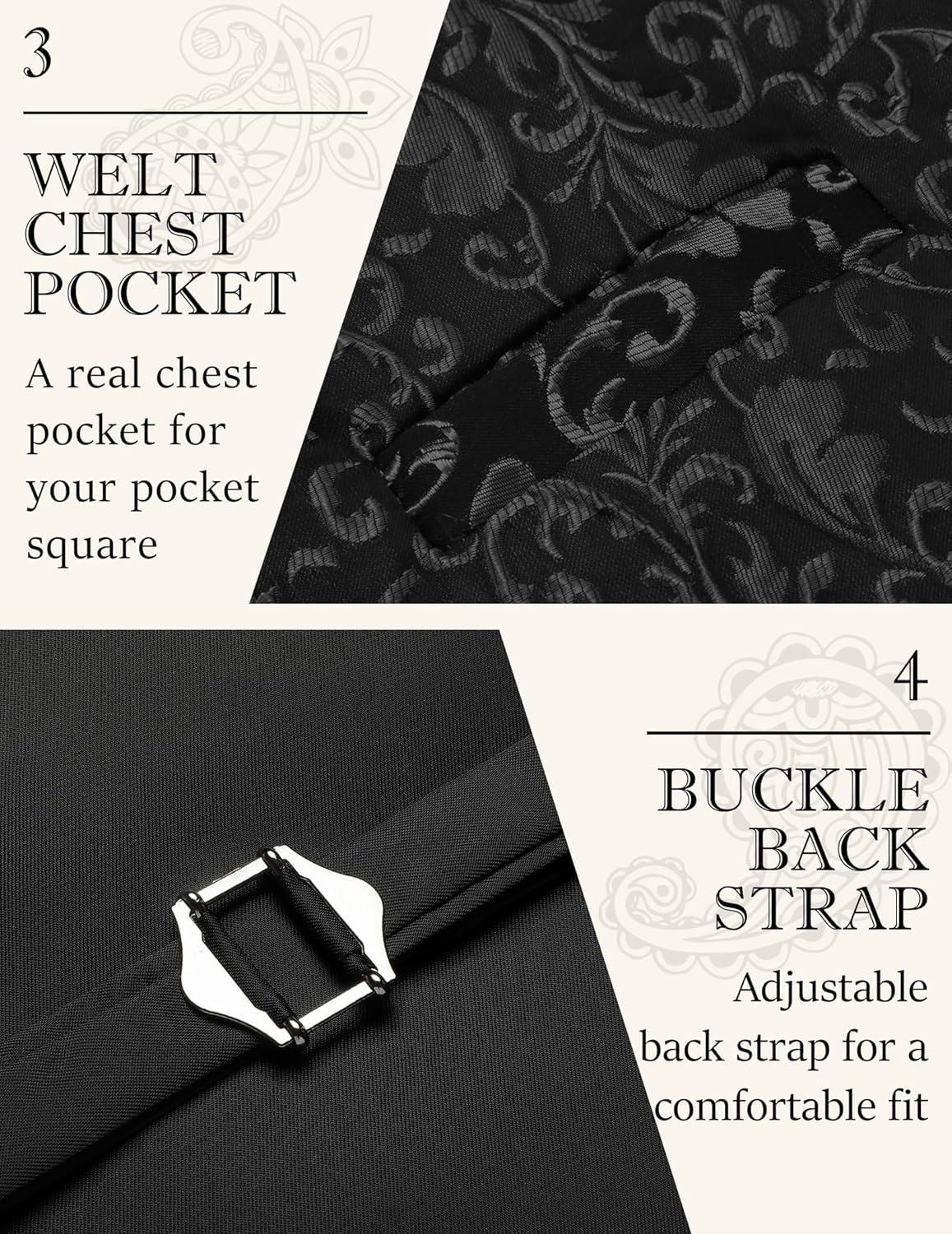 imageCOOFANDY Mens Christmas Vest Tie Set 3PC Paisley Jacquard Waistcoat and Necktie Pocket Square for Holiday Party WeddingBlack