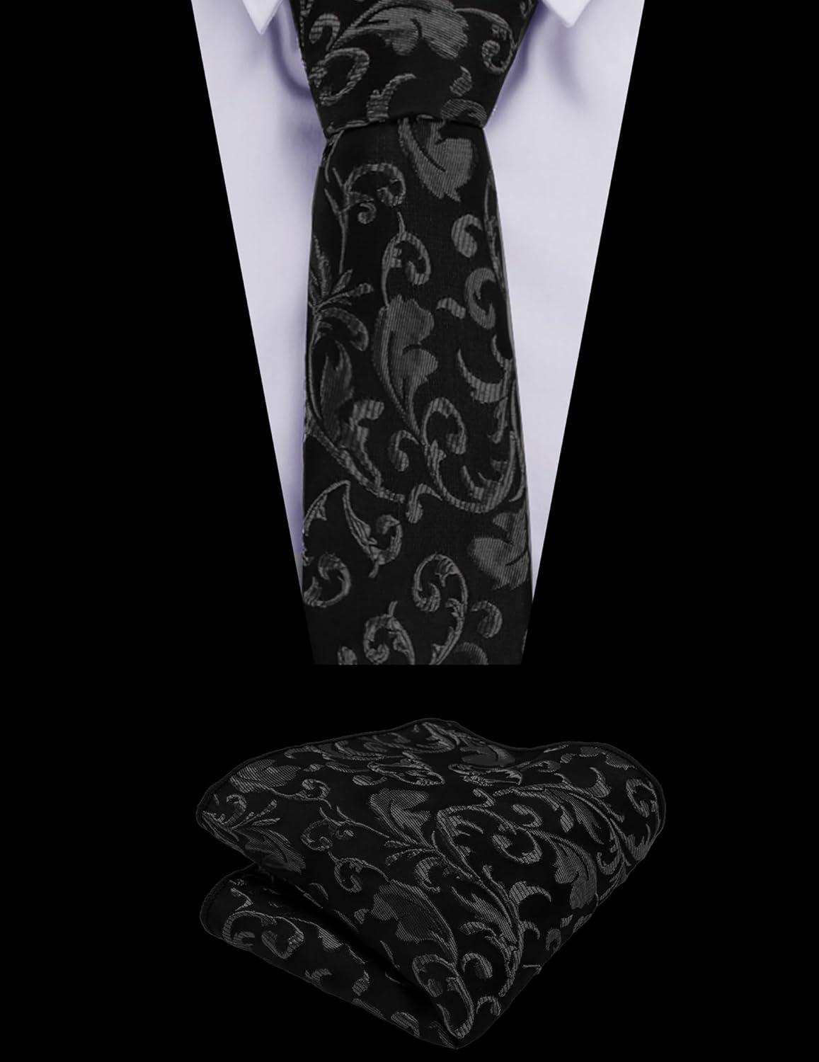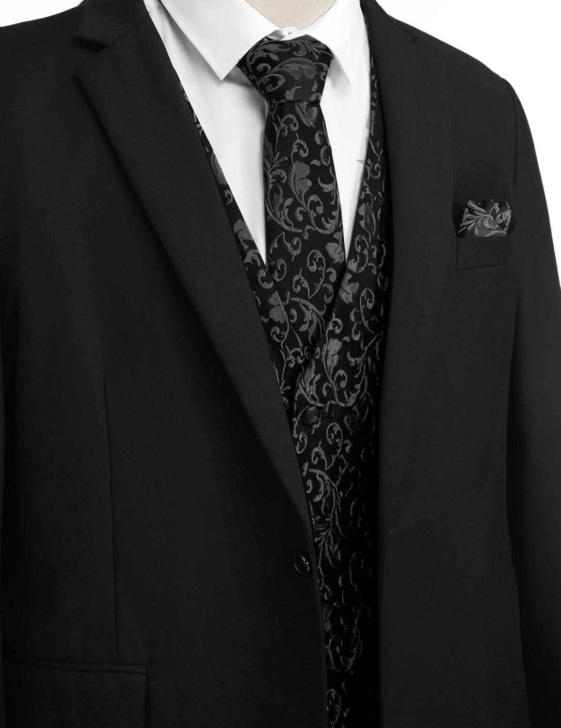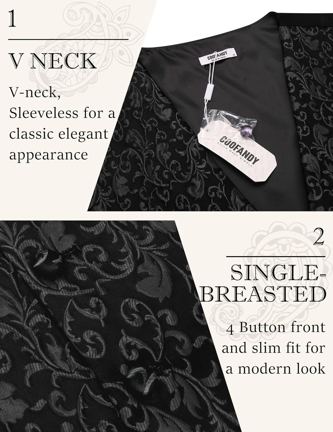COOFANDY Men's Christmas Vest Tie Set 3PC Paisley Jacquard Waistcoat and Necktie Pocket Square for Holiday Party Wedding(Black Filigree)