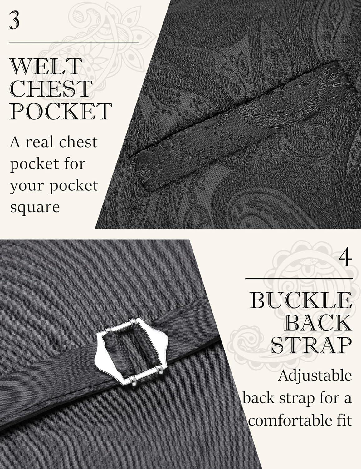 Don’t miss out on our limited-time offer: buy COOFANDY Men’s Christmas Vest Tie Set 3PC Paisley Jacquard Waistcoat and Necktie Pocket Square for Holiday Party Wedding(Black), get {accessory} free!