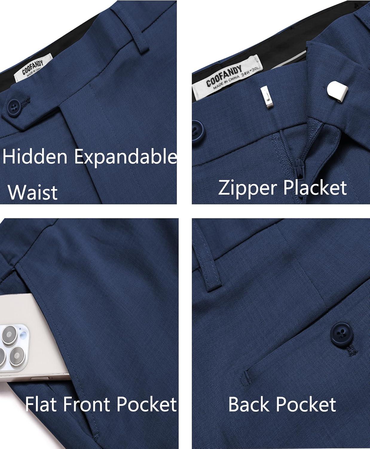 COOFANDY Mens Classic Casual Dress Pants Expandable Waist Suit Pant Slim Fit Flat Front Slacks(Blue)