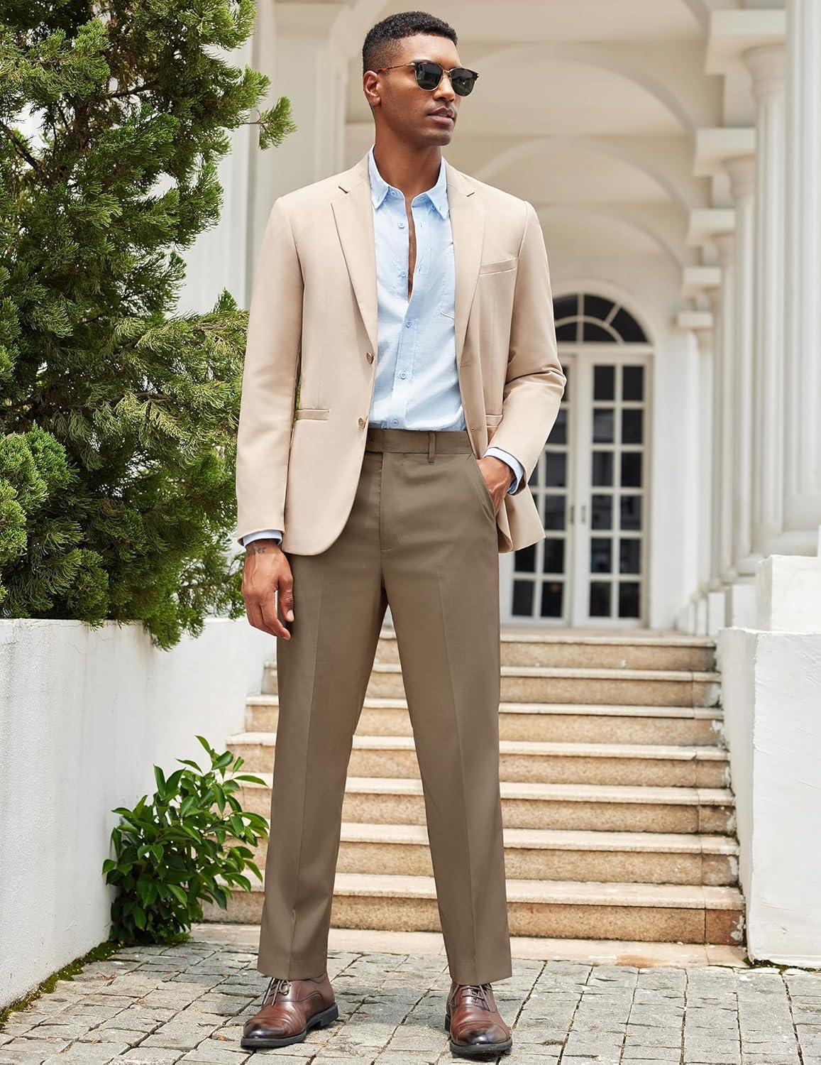COOFANDY Mens Classic Casual Dress Pants Expandable Waist Suit Pant Slim Fit Flat Front Slacks(Khaki)