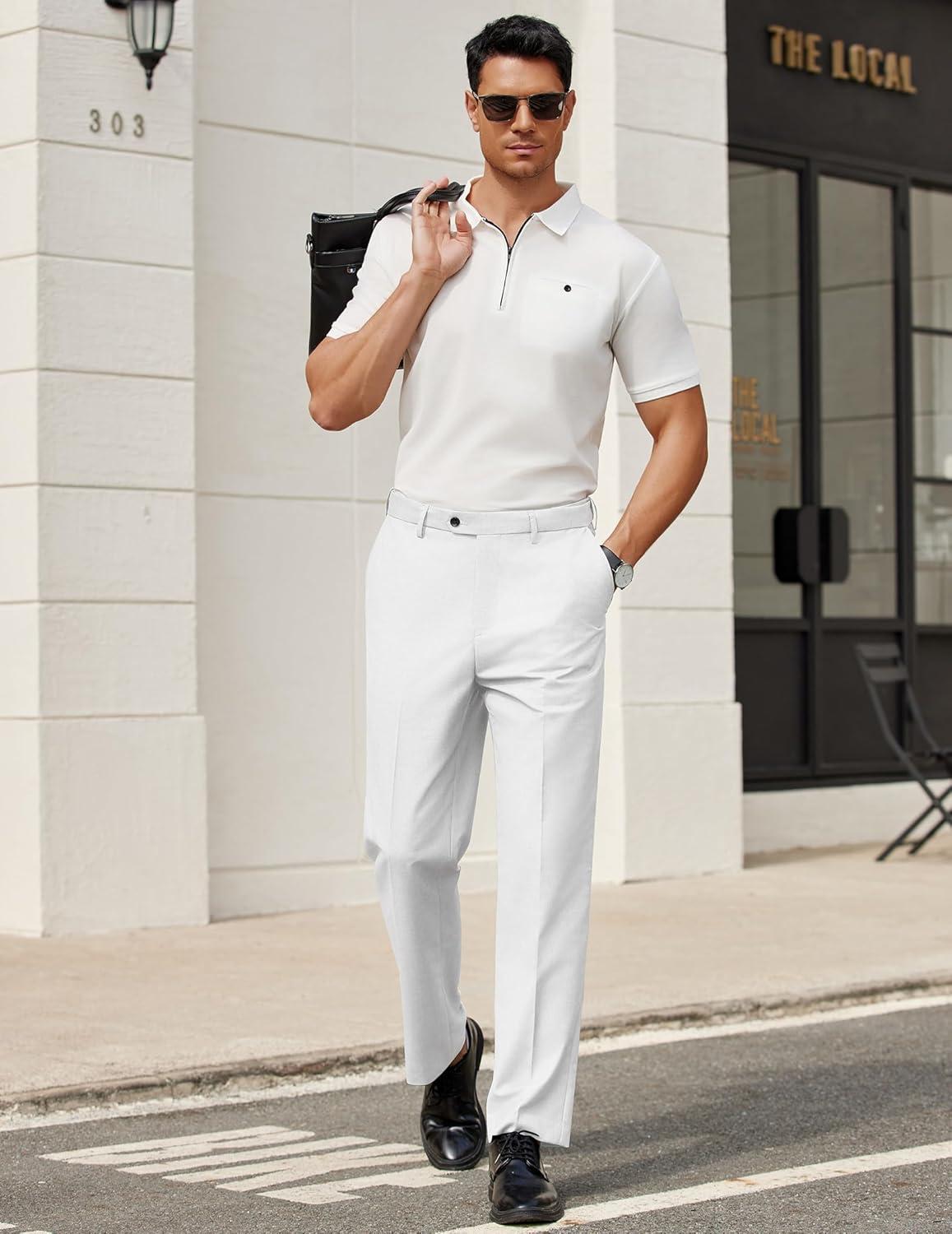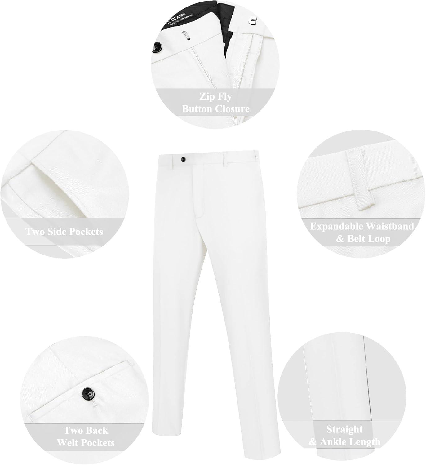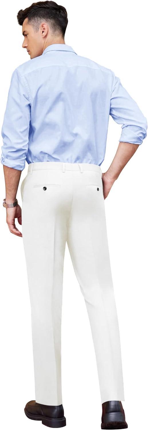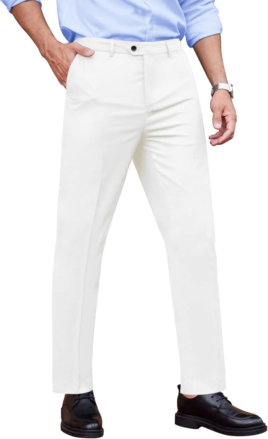 COOFANDY Men’s Classic Fit Dress Pants Flat Front Straight Formal Pants Wrinkle Free Expandable Waist Suit Pants(White)