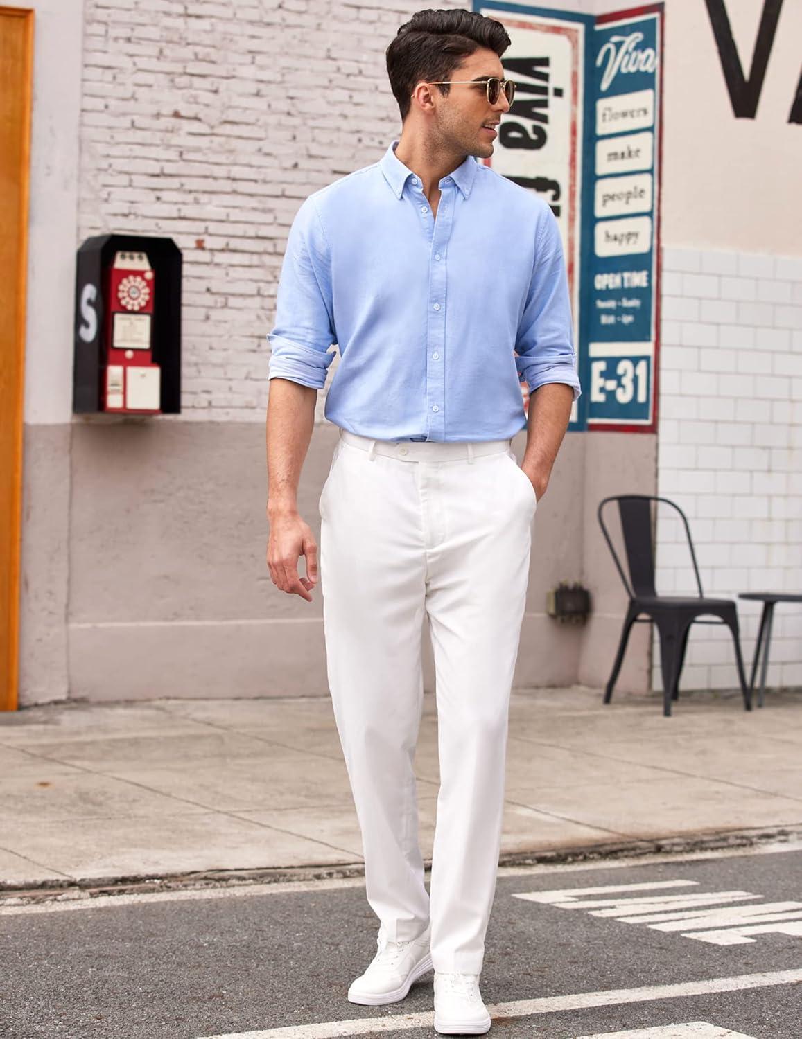 COOFANDY Men’s Classic Fit Flat Front Dress Pants No Iron Premium Casual Pants Expandable Waist Suit Pants(White)