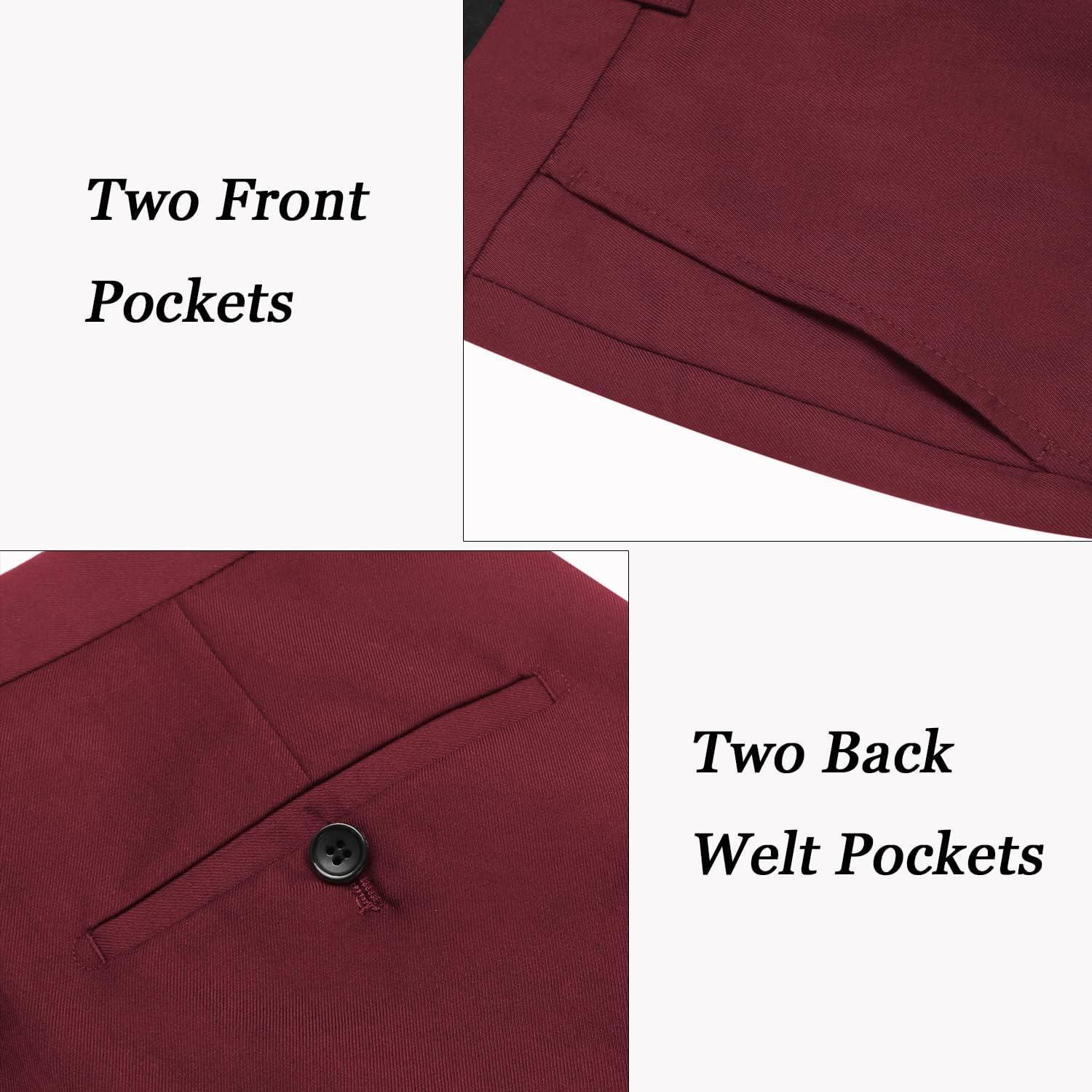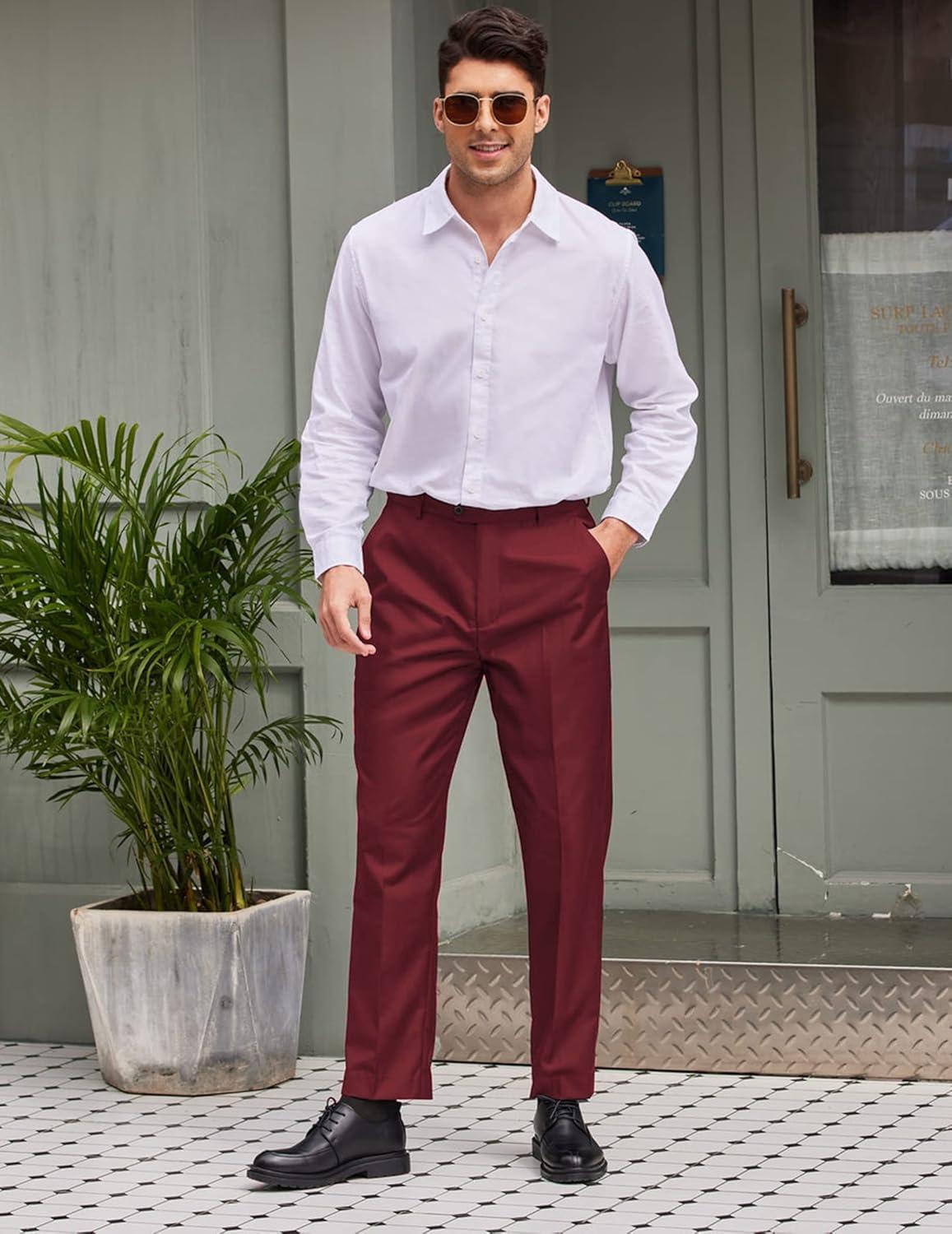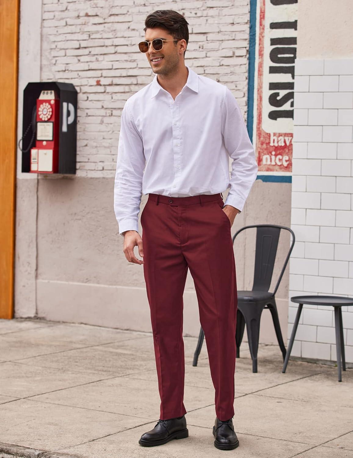 imageCOOFANDY Mens Classic Fit Flat Front Dress Pants No Iron Premium Casual Pants Expandable Waist Suit PantsWine Red