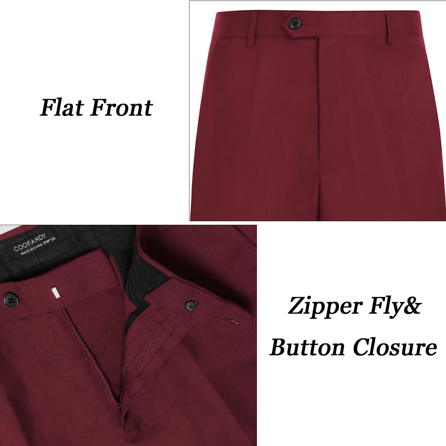 COOFANDY Men's Classic Fit Flat Front Dress Pants No Iron Premium Casual Pants Expandable Waist Suit Pants(Wine Red)