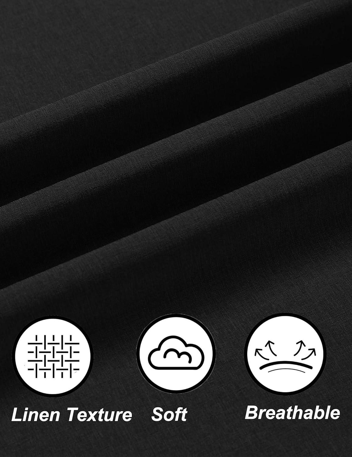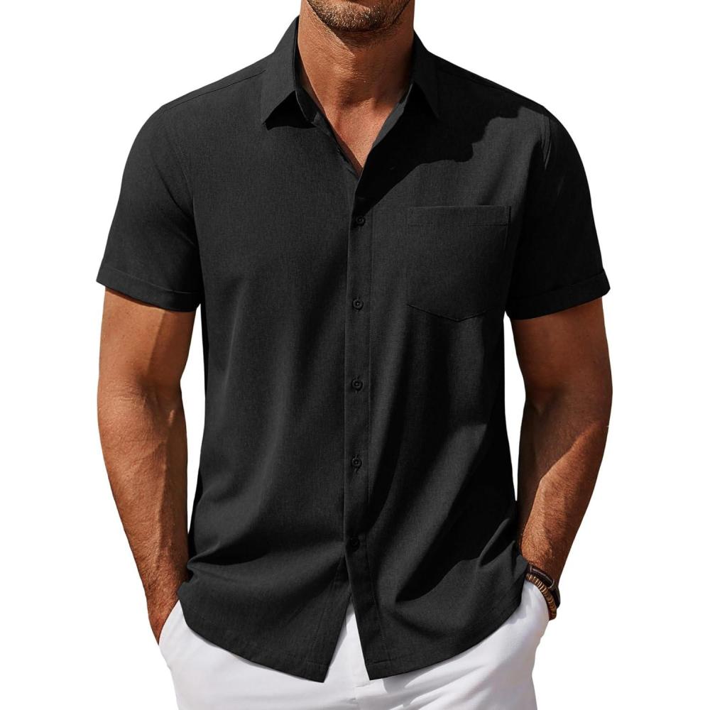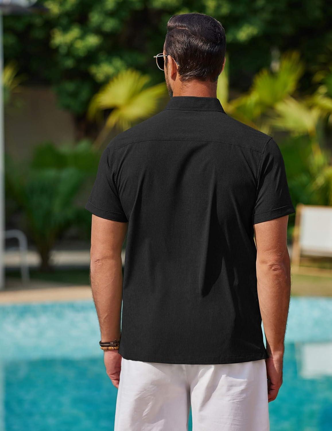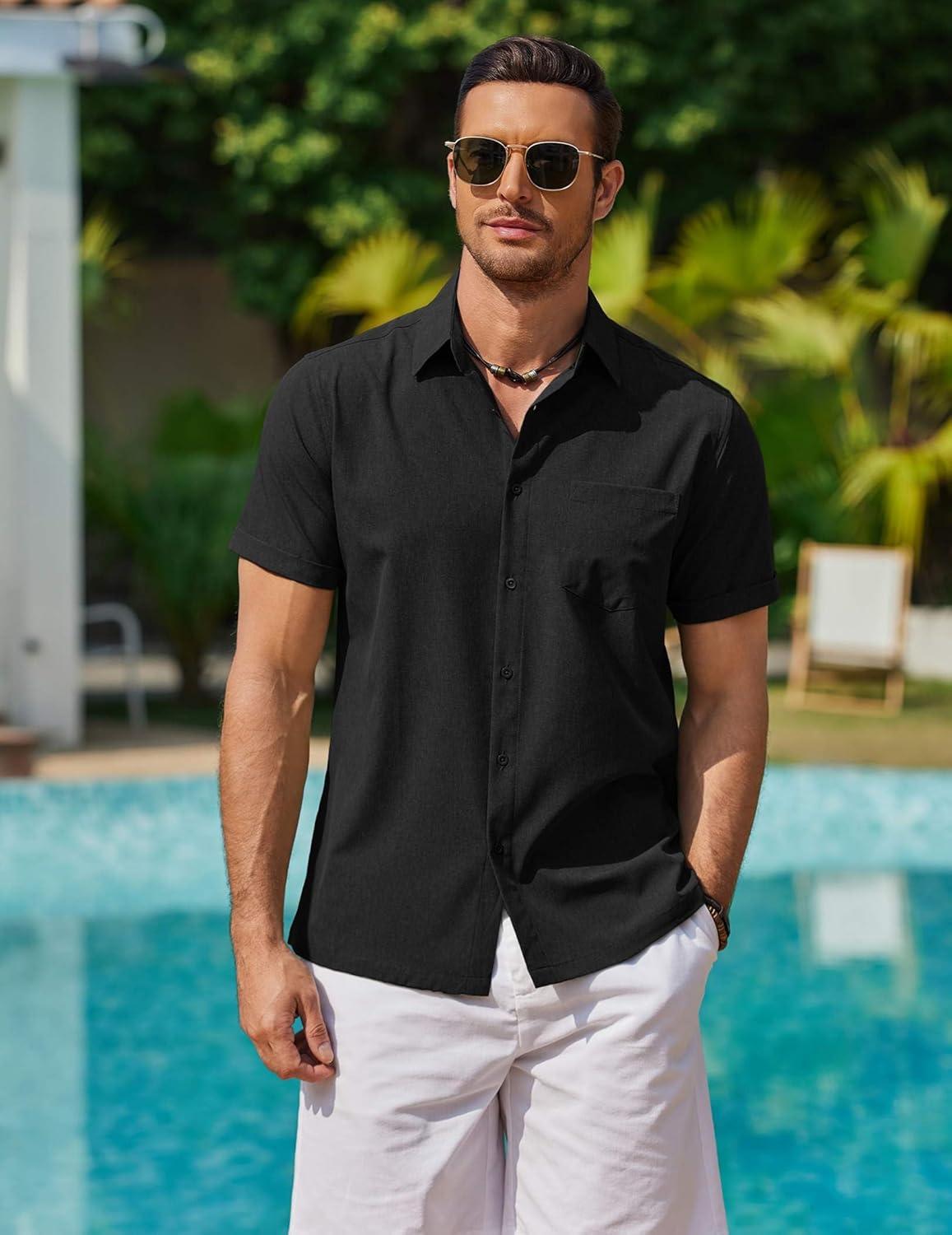 COOFANDY Mens Cool Button Down Shirt Short Sleeve Summer Beach Shirts Linen Texture Casual Shirts with Pocket(Black)