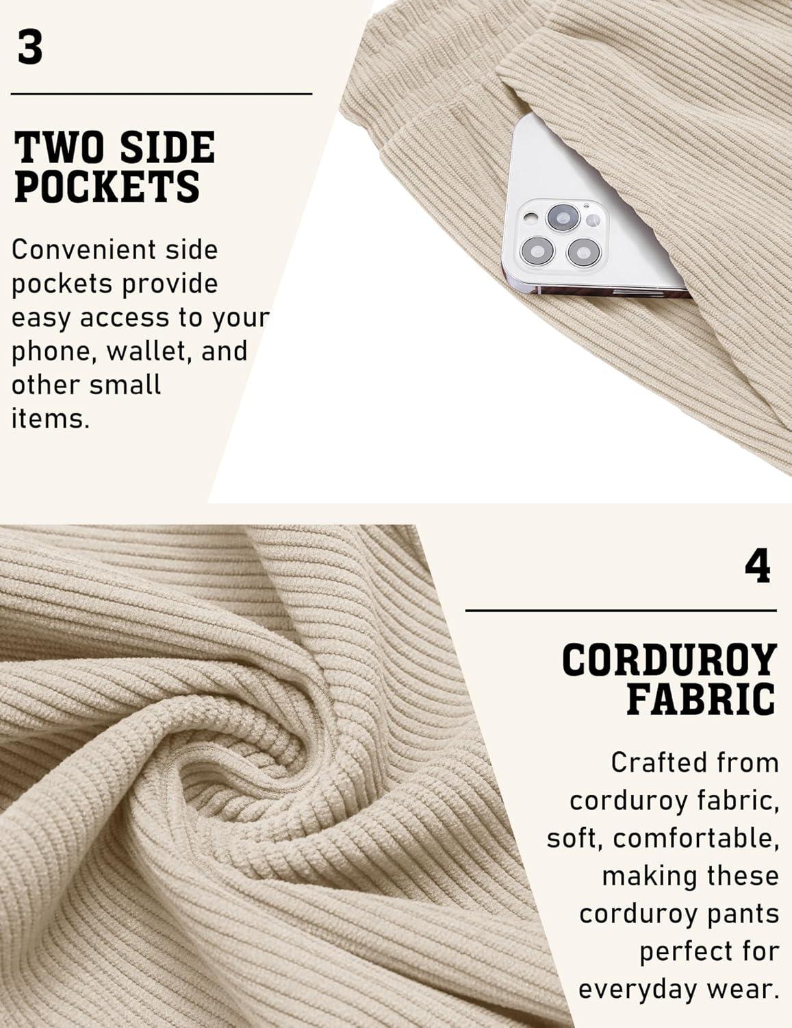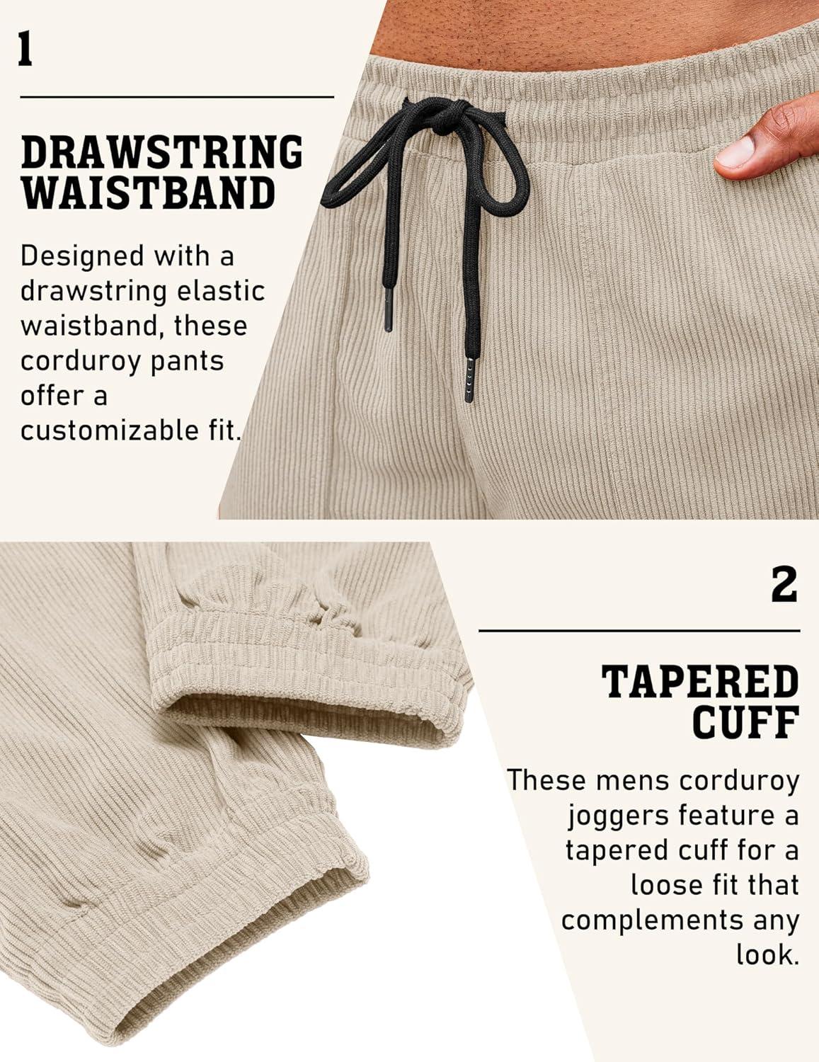 COOFANDY Men’s Corduroy Pants Casual Drawstring Trousers Elastic Waist Fashion Tapered Streetwear Joggers with Pockets(Beige)