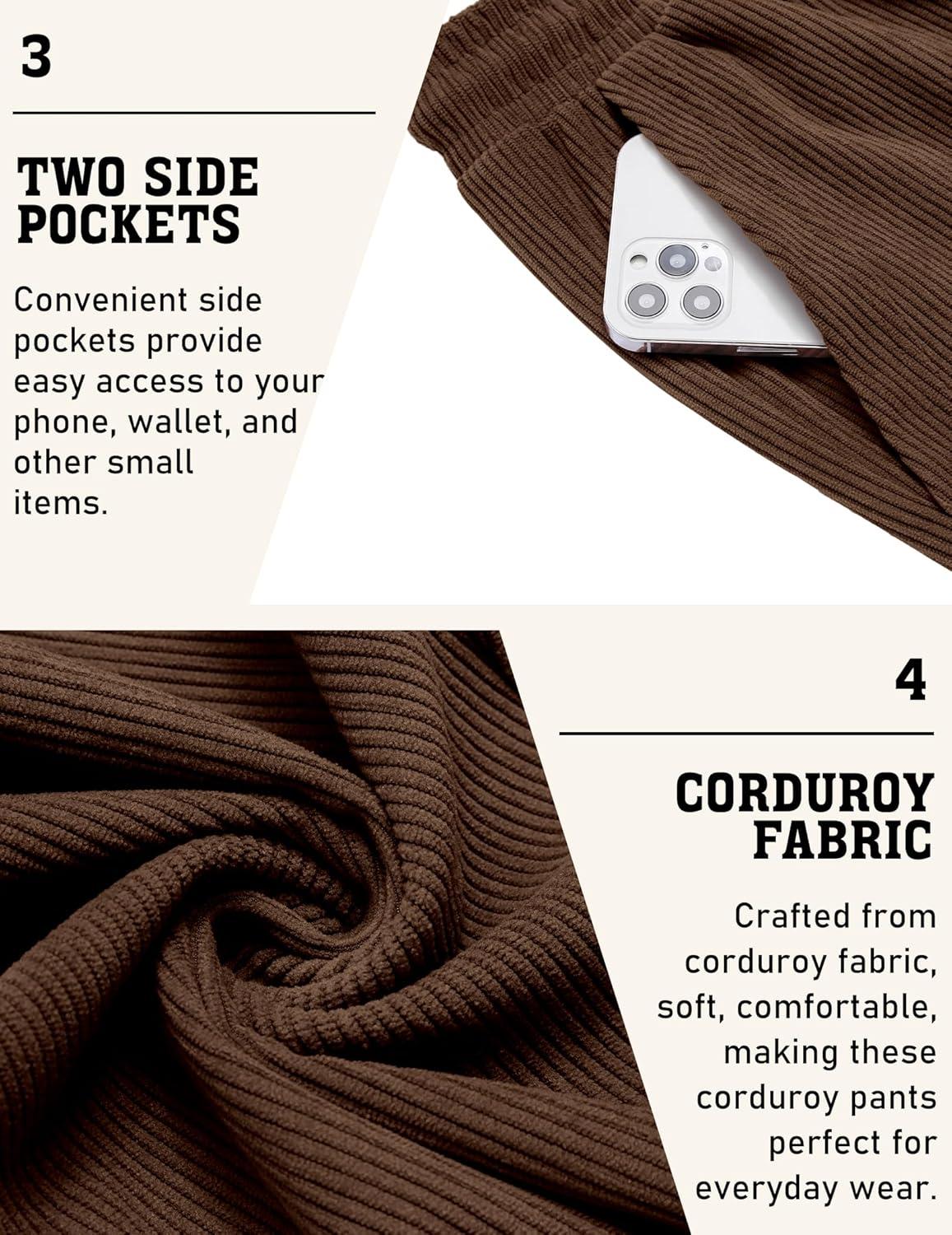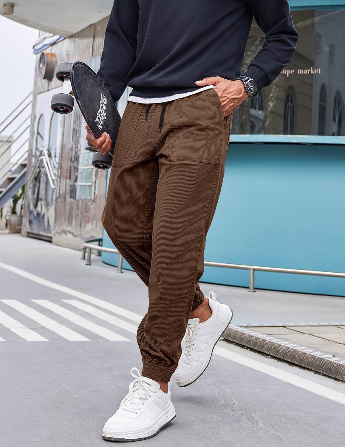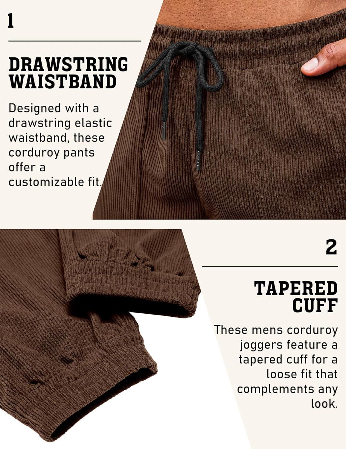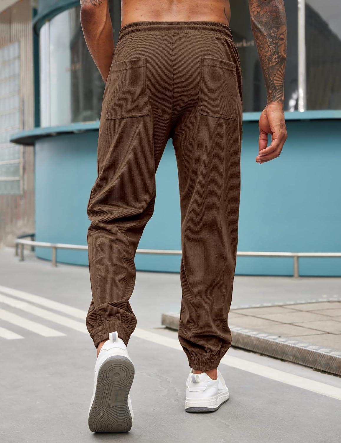 COOFANDY Men’s Corduroy Pants Casual Drawstring Trousers Elastic Waist Fashion Tapered Streetwear Joggers with Pockets(Brown)
