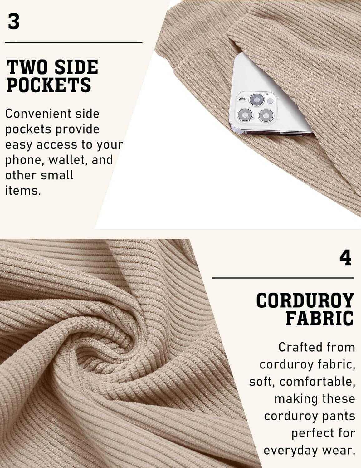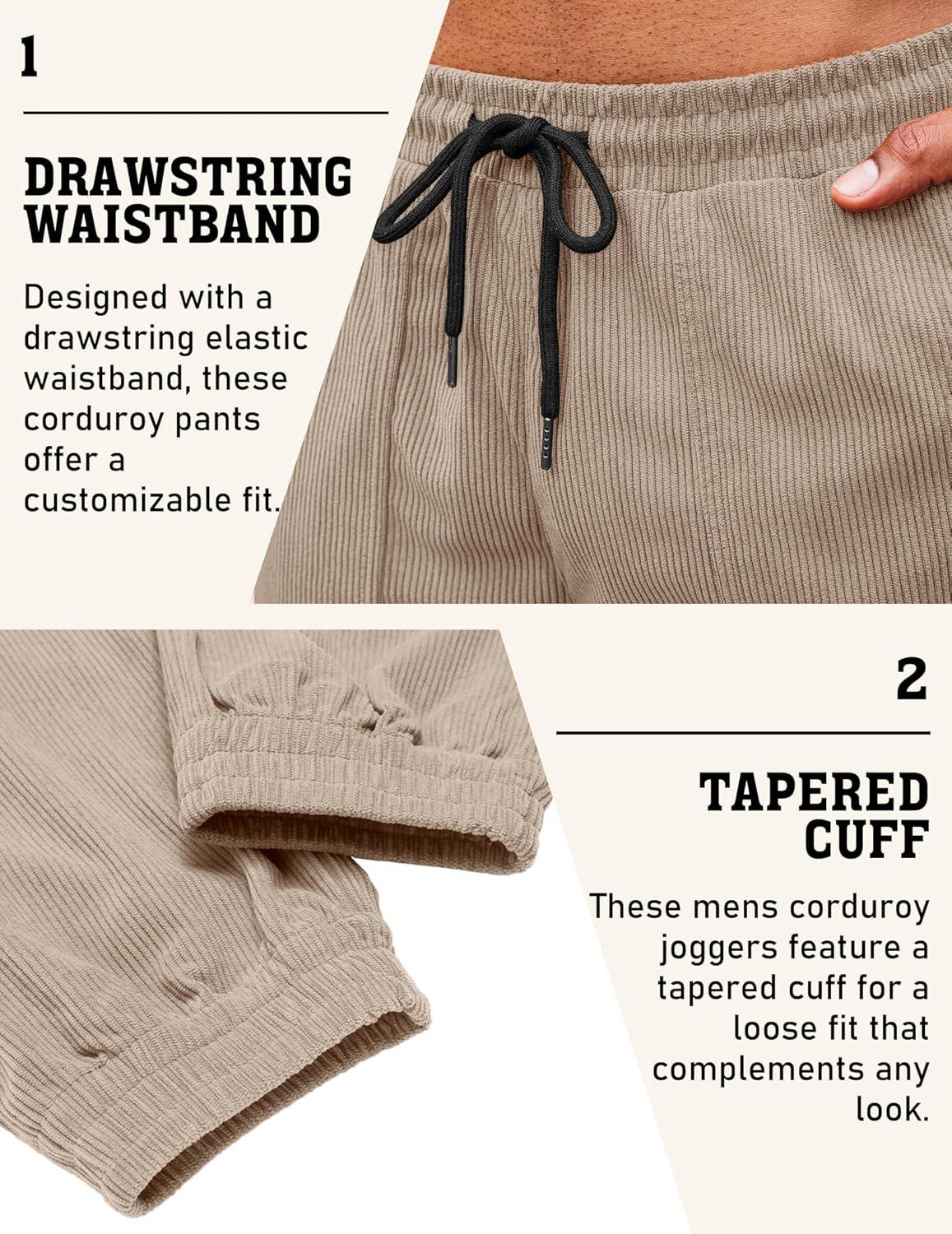 COOFANDY Men’s Corduroy Pants Casual Drawstring Trousers Elastic Waist Fashion Tapered Streetwear Joggers with Pockets(Light Khaki)