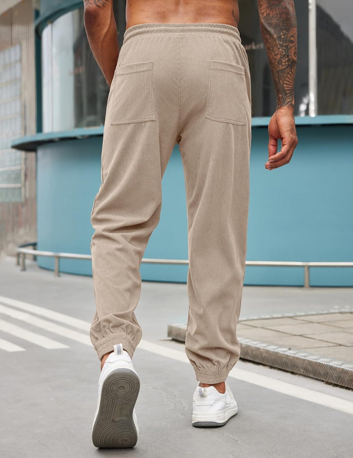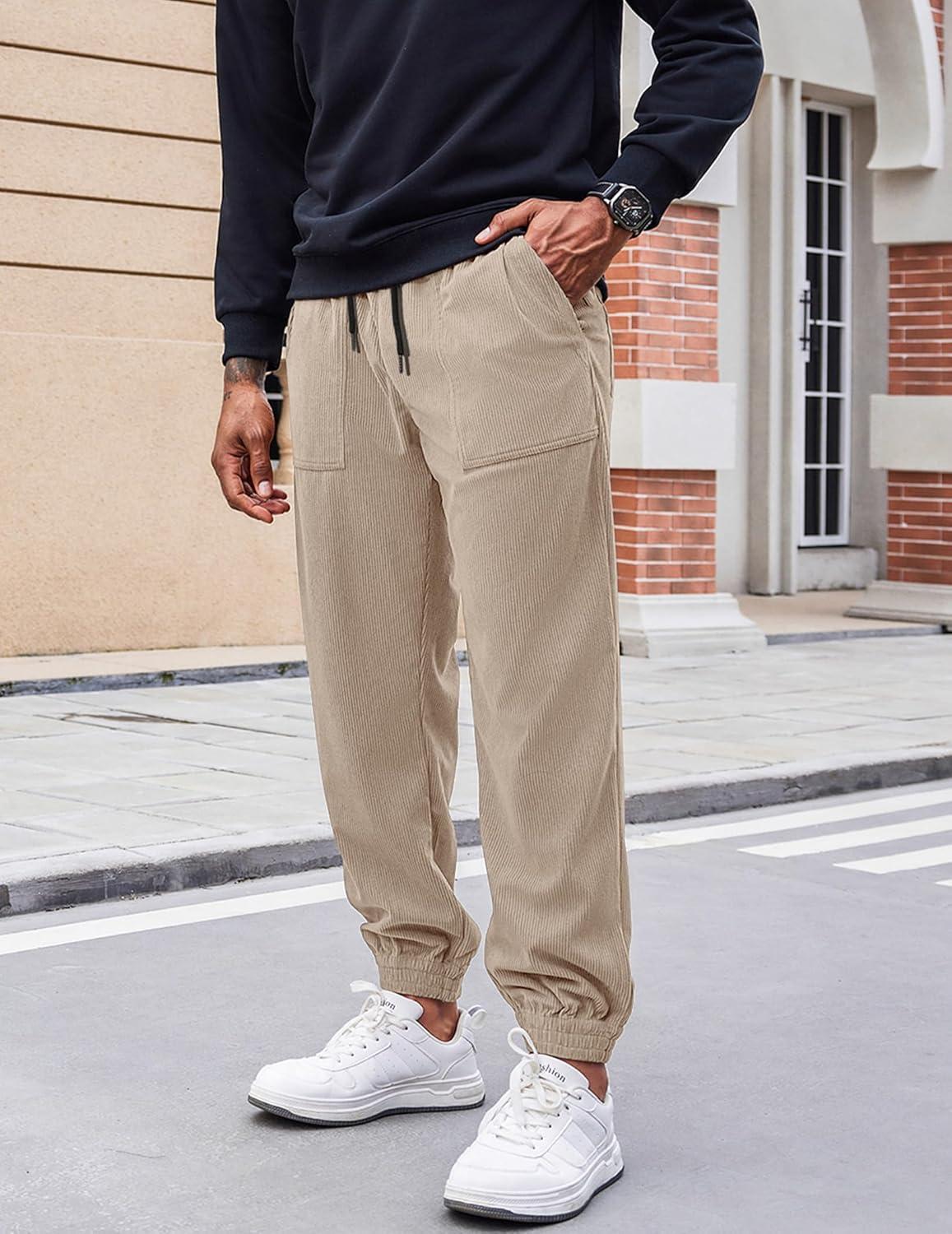 COOFANDY Men's Corduroy Pants Casual Drawstring Trousers Elastic Waist Fashion Tapered Streetwear Joggers with Pockets(Light Khaki)