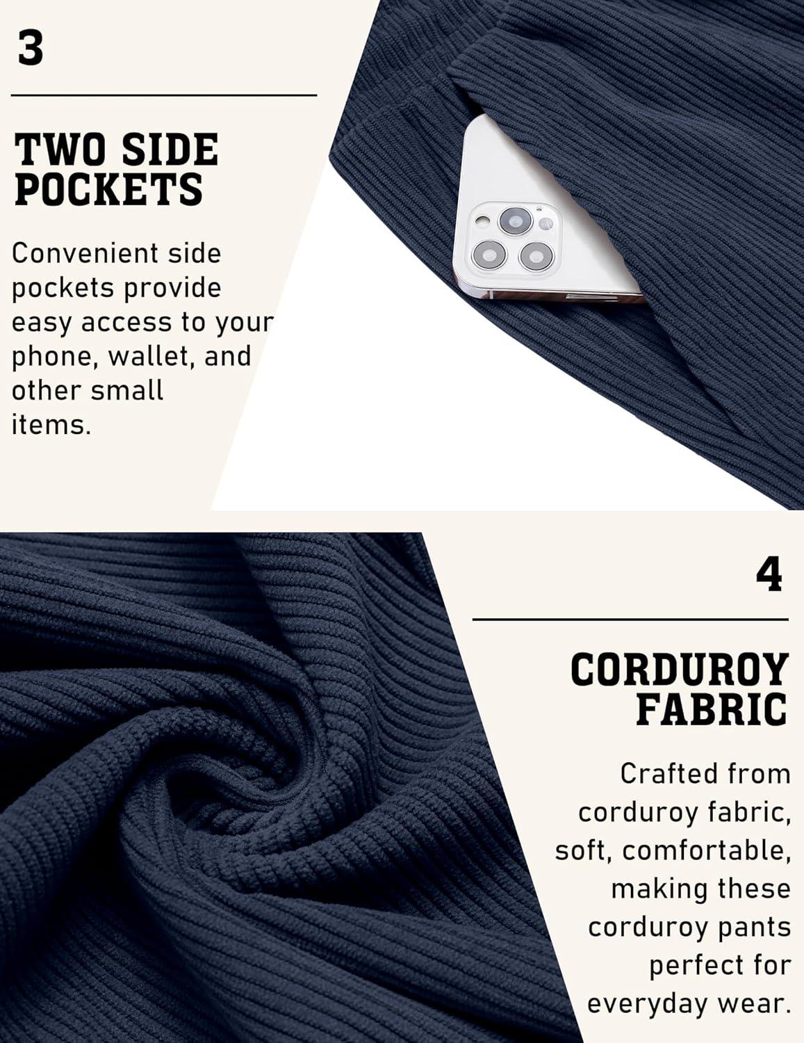 Get the COOFANDY Men’s Corduroy Pants Casual Drawstring Trousers Elastic Waist Fashion Tapered Streetwear Joggers with Pockets(Navy Blue) you want at a discounted price during our markdown sale event.