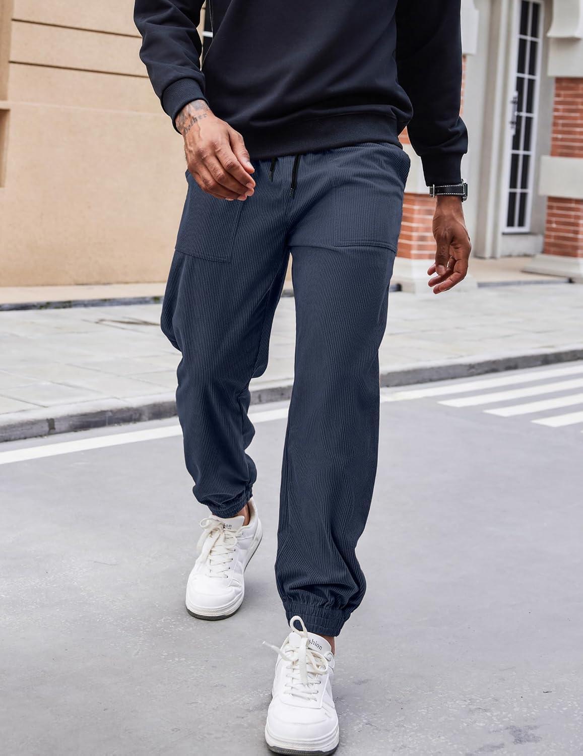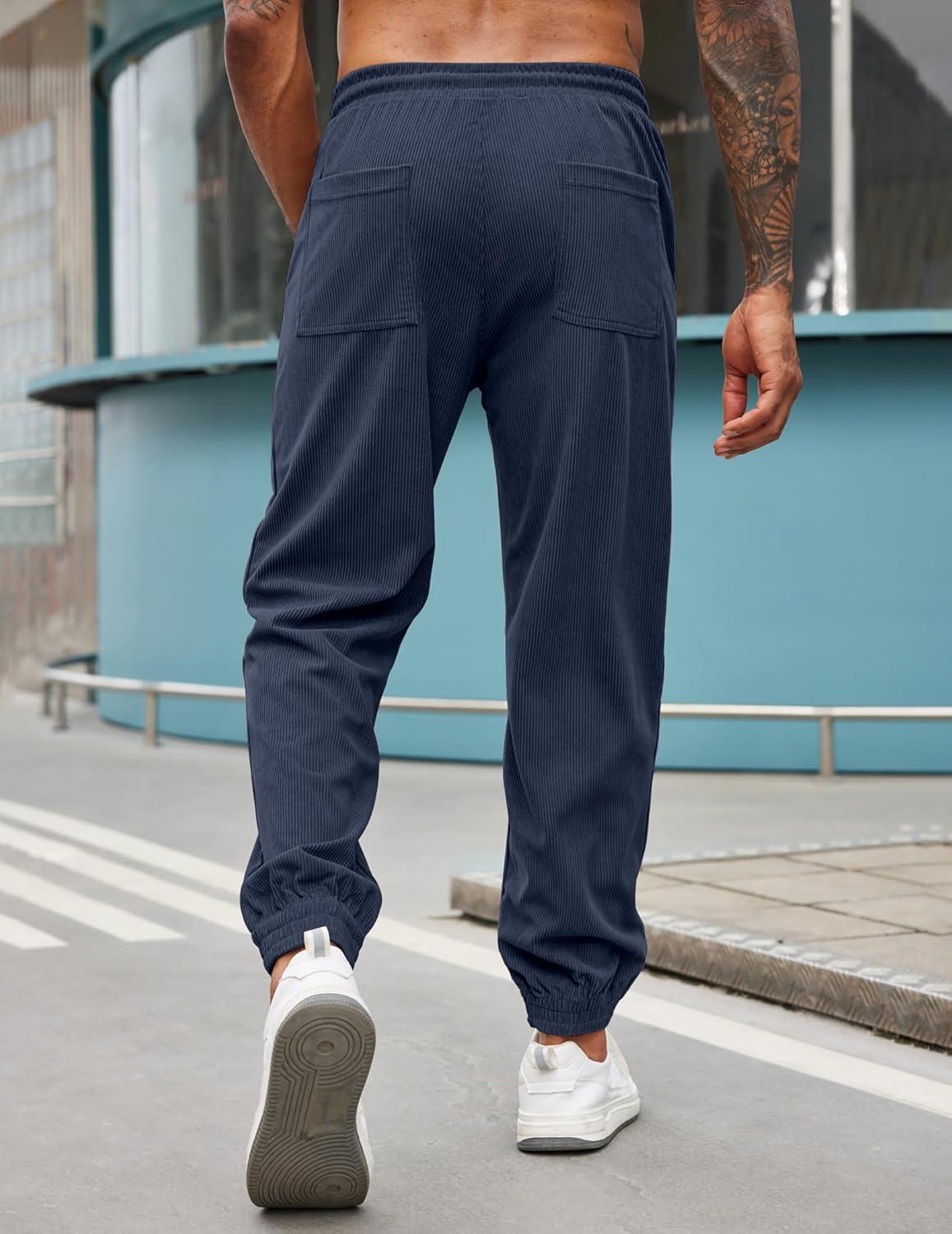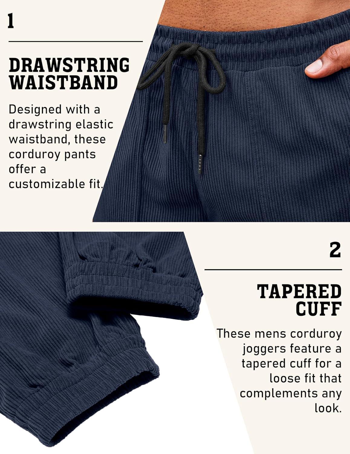 COOFANDY Men’s Corduroy Pants Casual Drawstring Trousers Elastic Waist Fashion Tapered Streetwear Joggers with Pockets(Navy Blue)