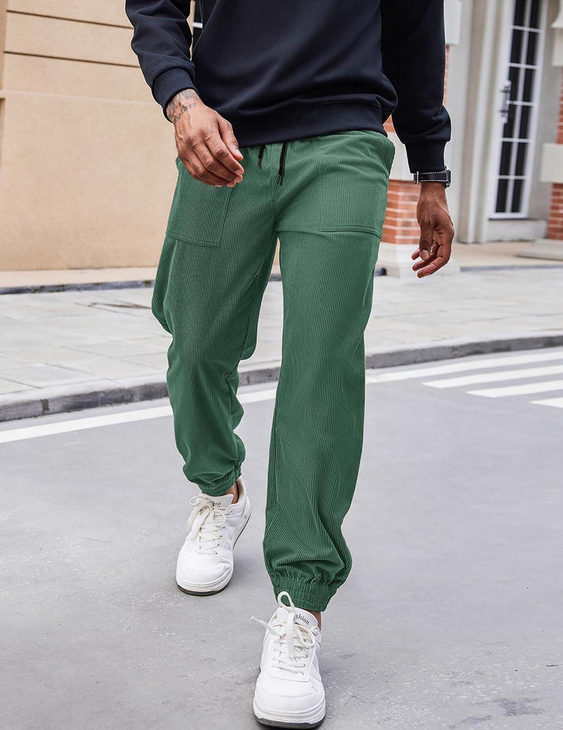 COOFANDY Men's Corduroy Pants Casual Drawstring Trousers Elastic Waist Fashion Tapered Streetwear Joggers with Pockets(Peacock Green)