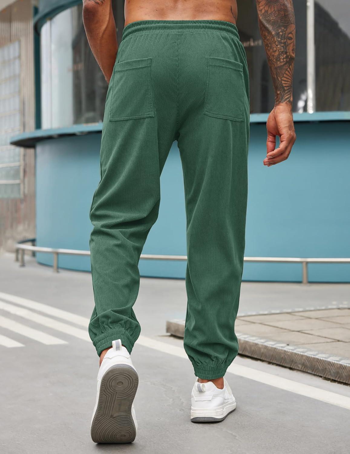 COOFANDY Men’s Corduroy Pants Casual Drawstring Trousers Elastic Waist Fashion Tapered Streetwear Joggers with Pockets(Peacock Green)