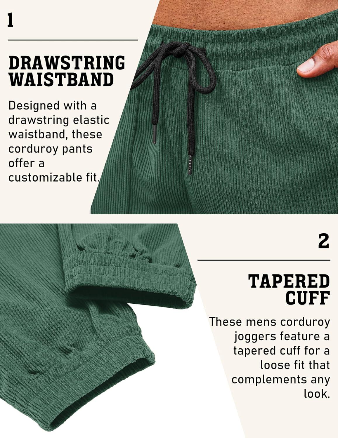 Our holiday sale features the best deals on COOFANDY Men’s Corduroy Pants Casual Drawstring Trousers Elastic Waist Fashion Tapered Streetwear Joggers with Pockets(Peacock Green) and accessories. Shop now and save!