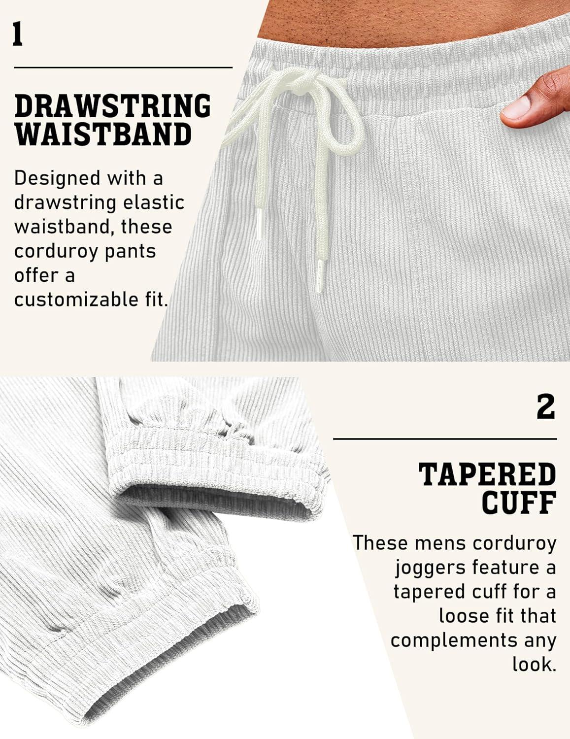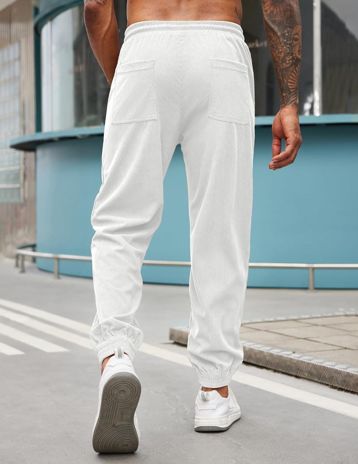 COOFANDY Men’s Corduroy Pants Casual Drawstring Trousers Elastic Waist Fashion Tapered Streetwear Joggers with Pockets(White)