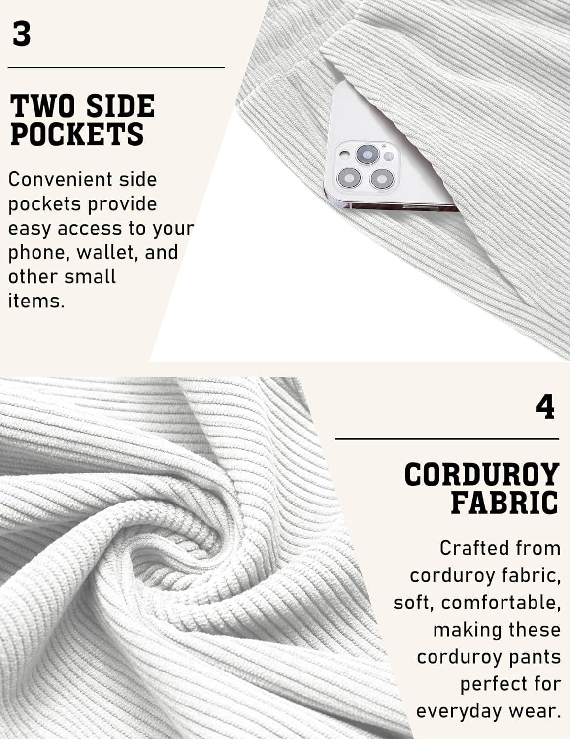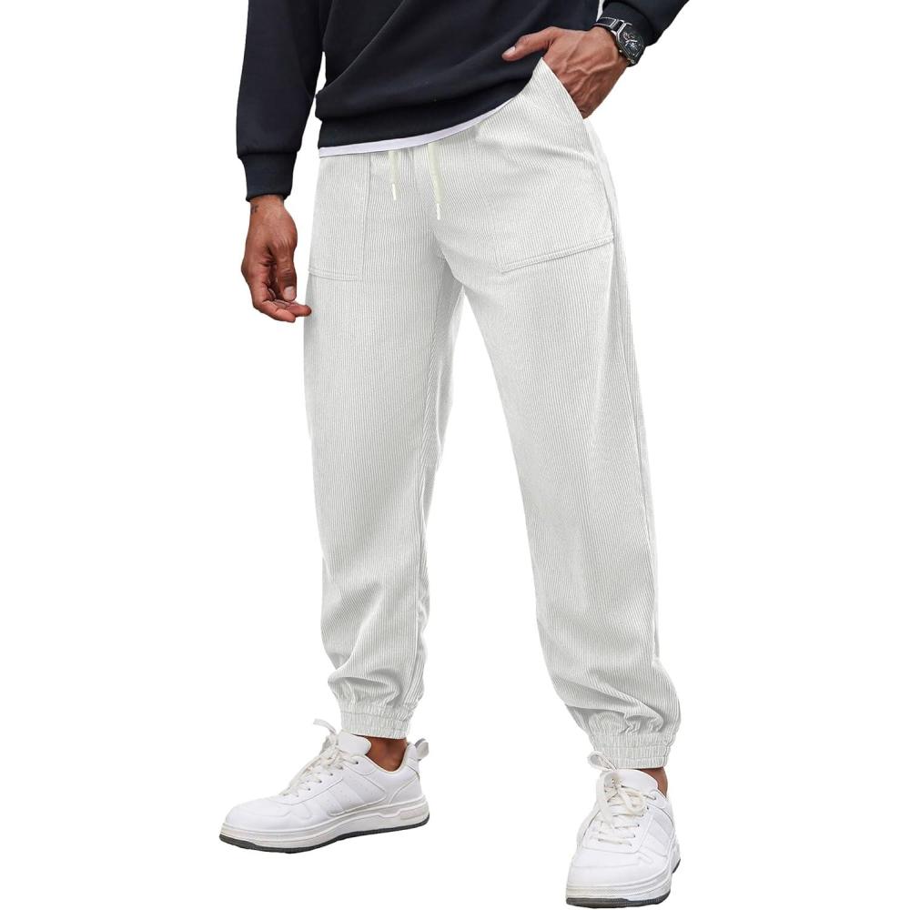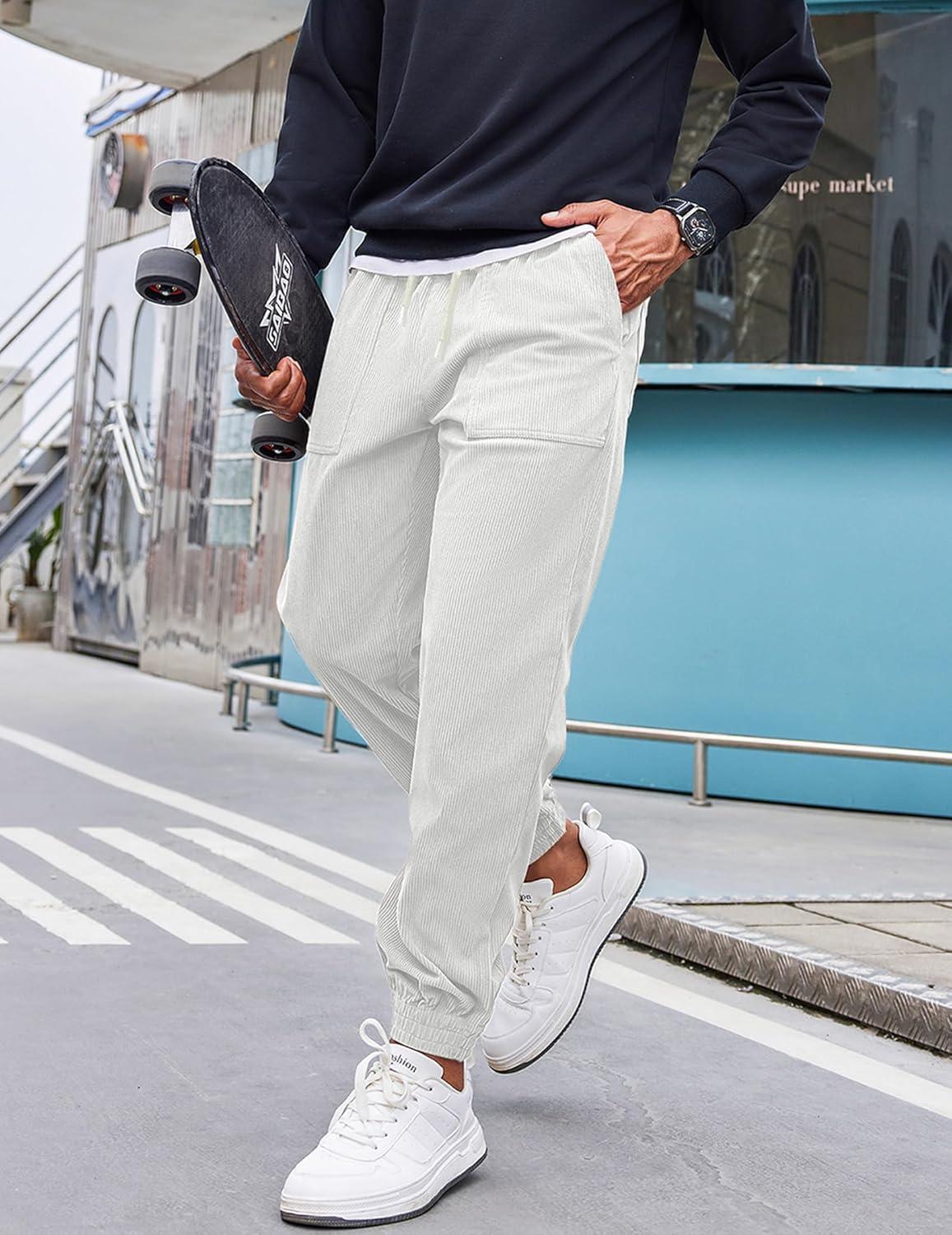 COOFANDY Men's Corduroy Pants Casual Drawstring Trousers Elastic Waist Fashion Tapered Streetwear Joggers with Pockets(White)