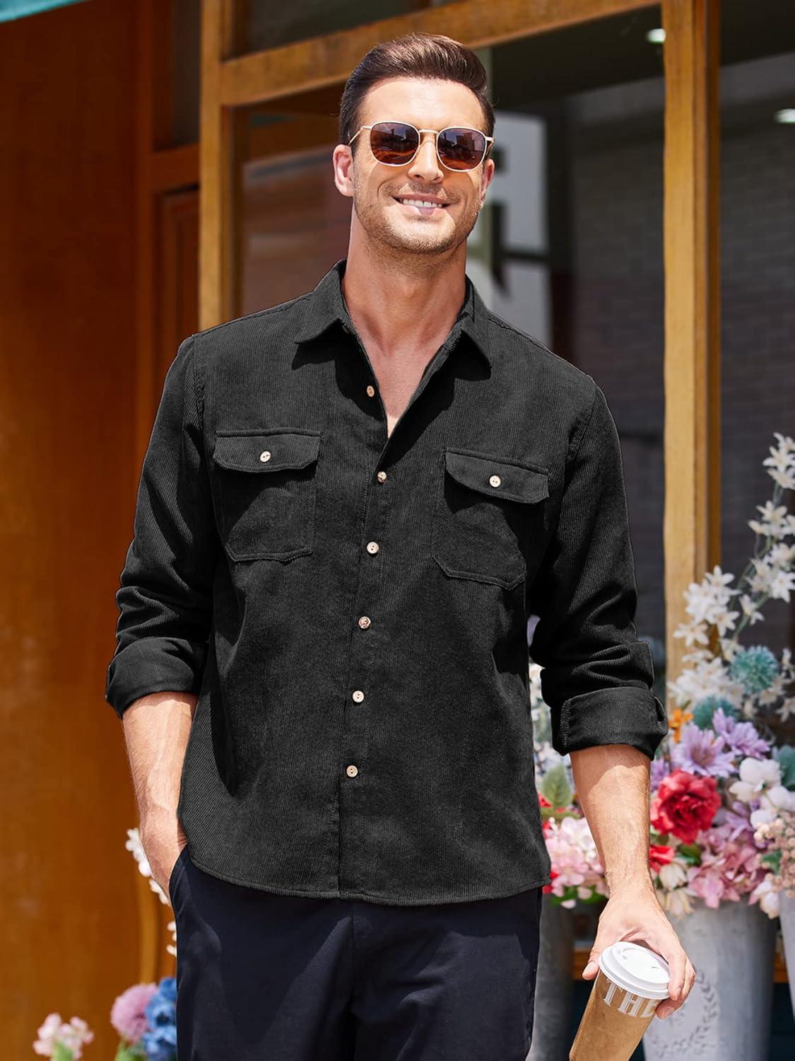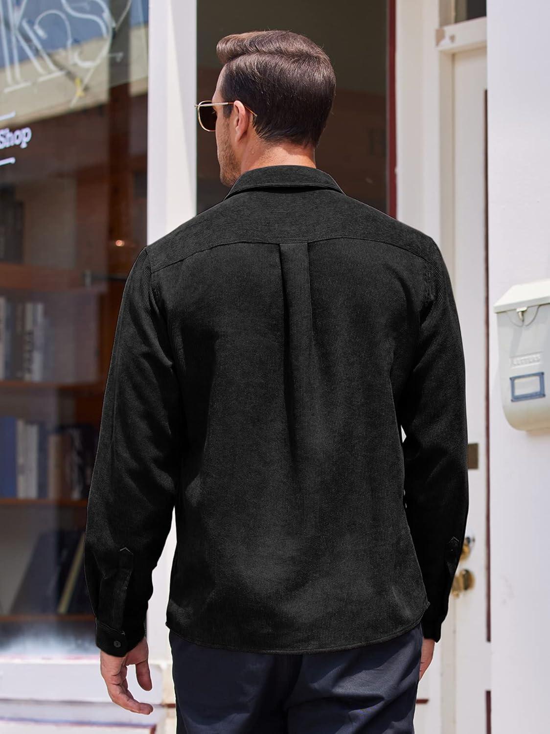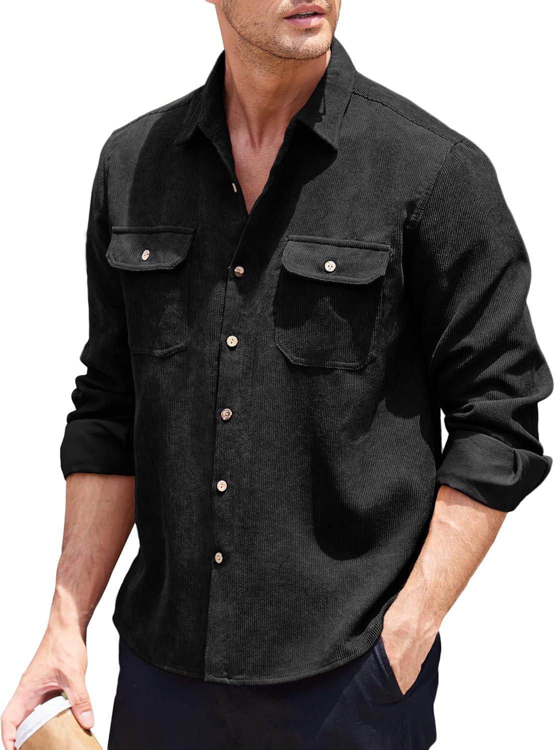 COOFANDY Men’s Corduroy Shirt Casual Button Down Shirt Jacket Lightweight Shacket(Black)