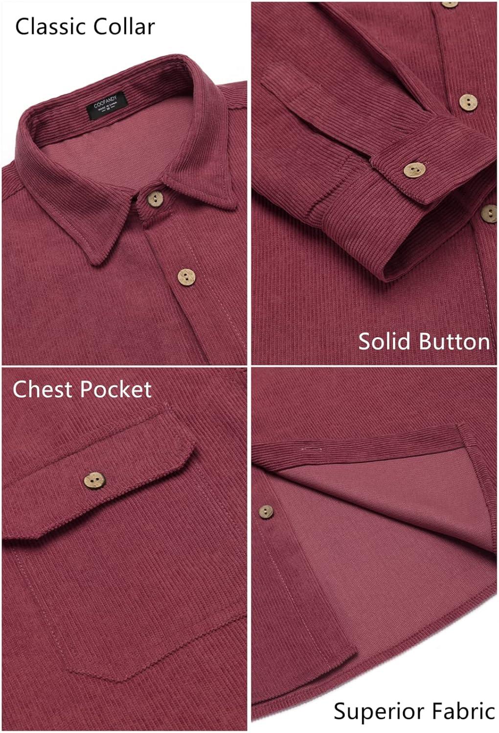 COOFANDY Men’s Corduroy Casual Shirt Long Sleeve Button Down Shirts Slim Fit