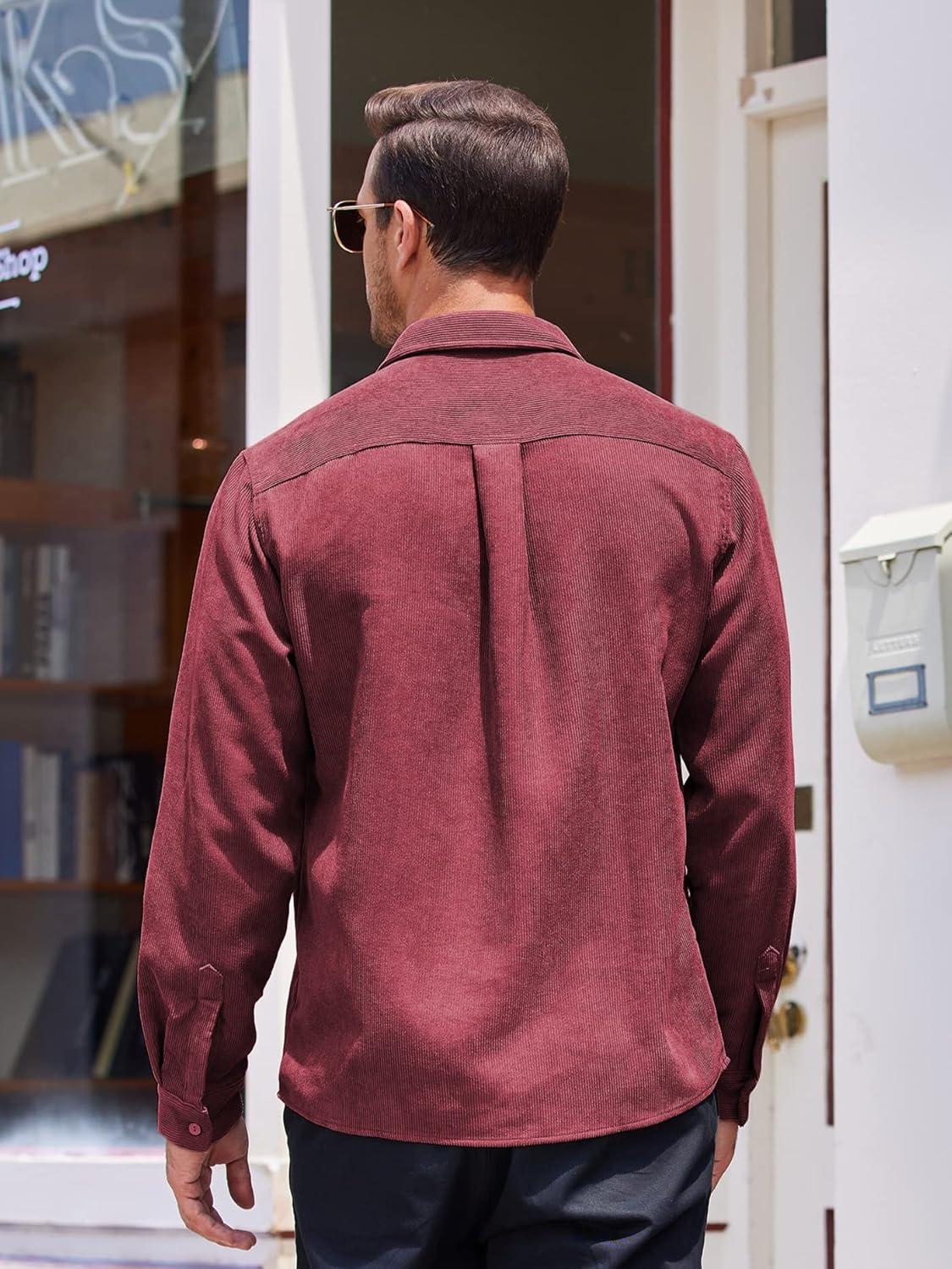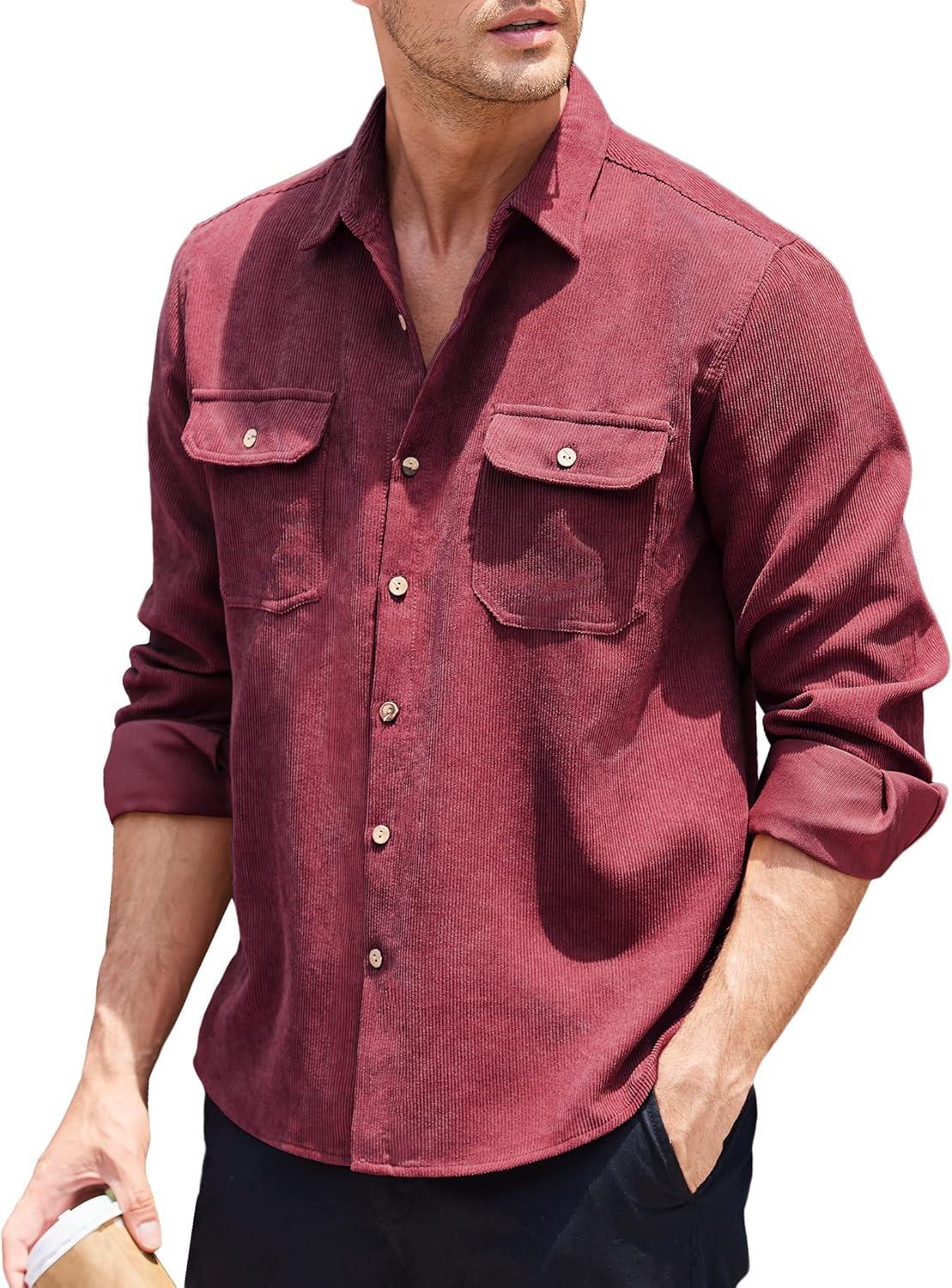 COOFANDY Men's Corduroy Shirt Casual Button Down Shirt Jacket Lightweight Shacket(Wine Red)