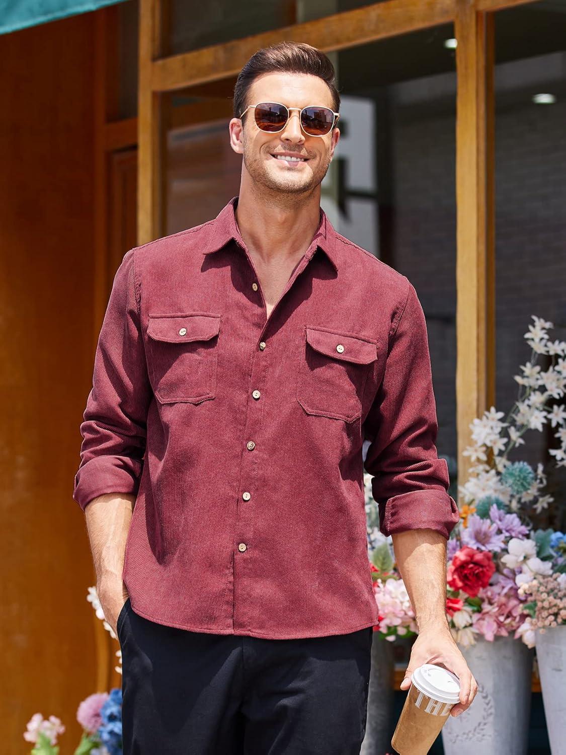 COOFANDY Men’s Corduroy Shirt Casual Button Down Shirt Jacket Lightweight Shacket(Wine Red)