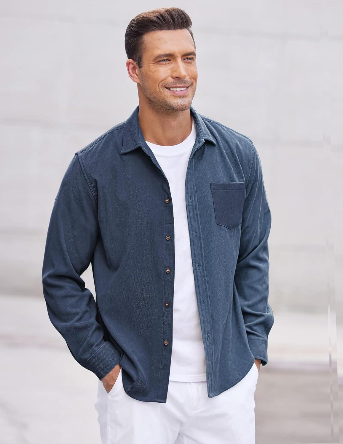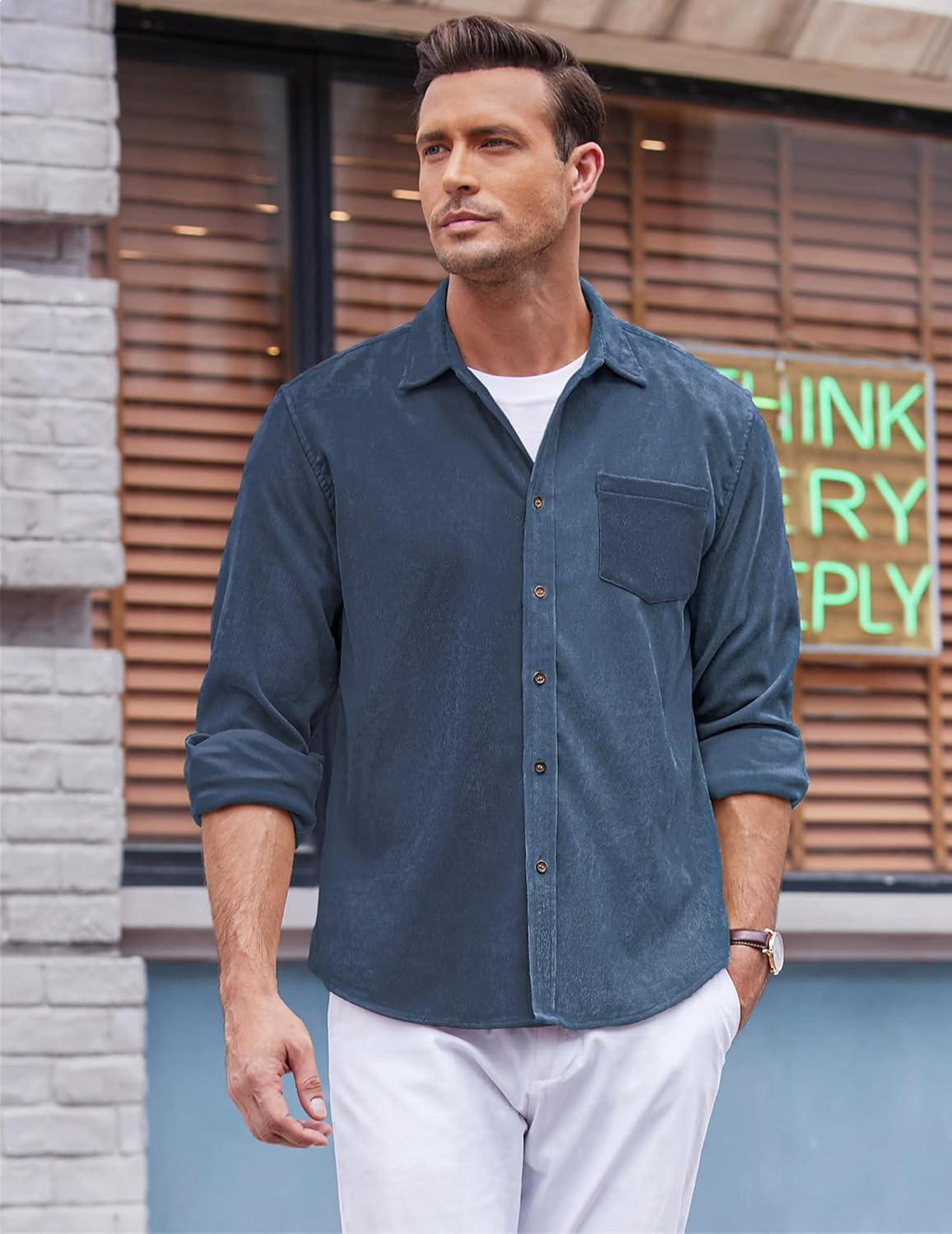 COOFANDY men’s corduroy casual shirt lightweight, classic, durable, is a must in your wardrobe. High-quality ribbed corduroy fabric features soft and warm, has a good three-dimensional effect.
