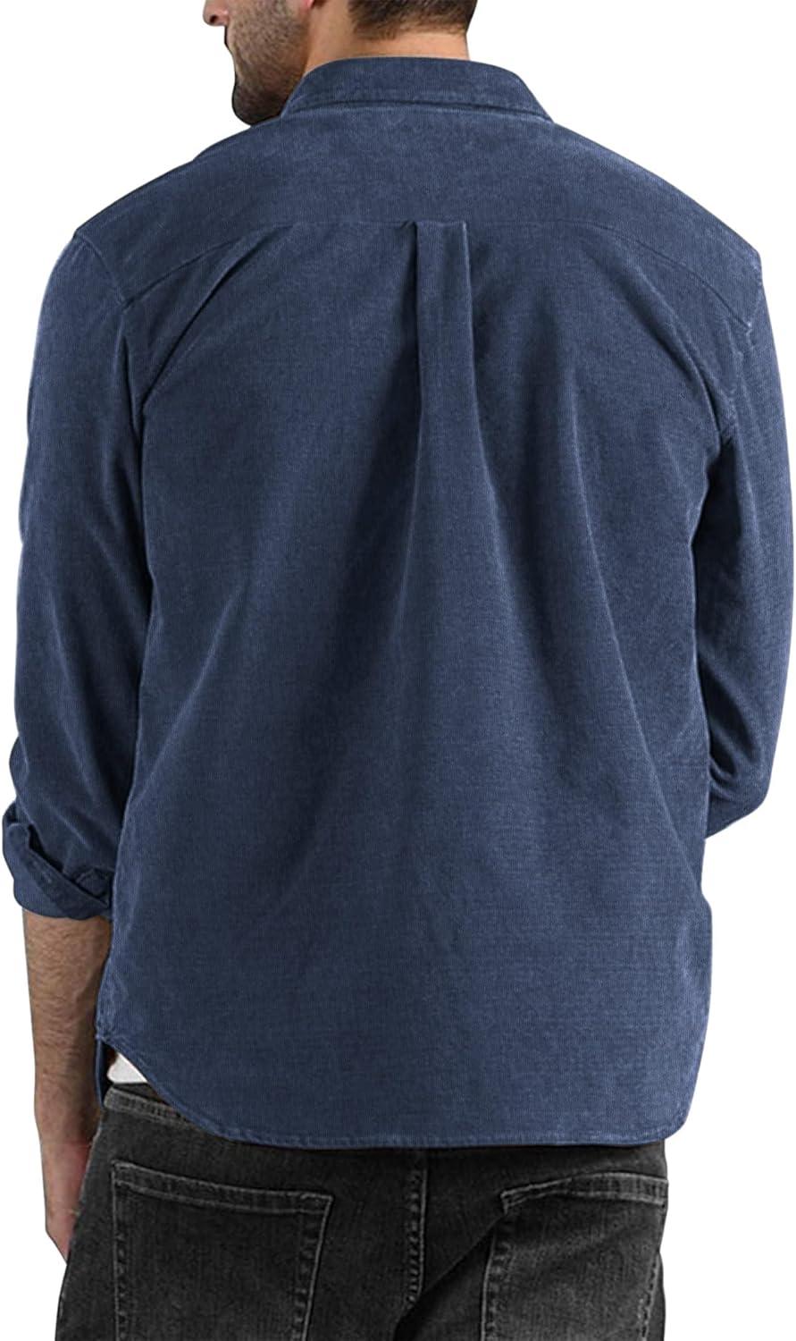 COOFANDY Men's Corduroy Shirt Casual Long Sleeve Button Down Lightweight Jacket Fall Textured Shacket(Blue & Navy Blue)