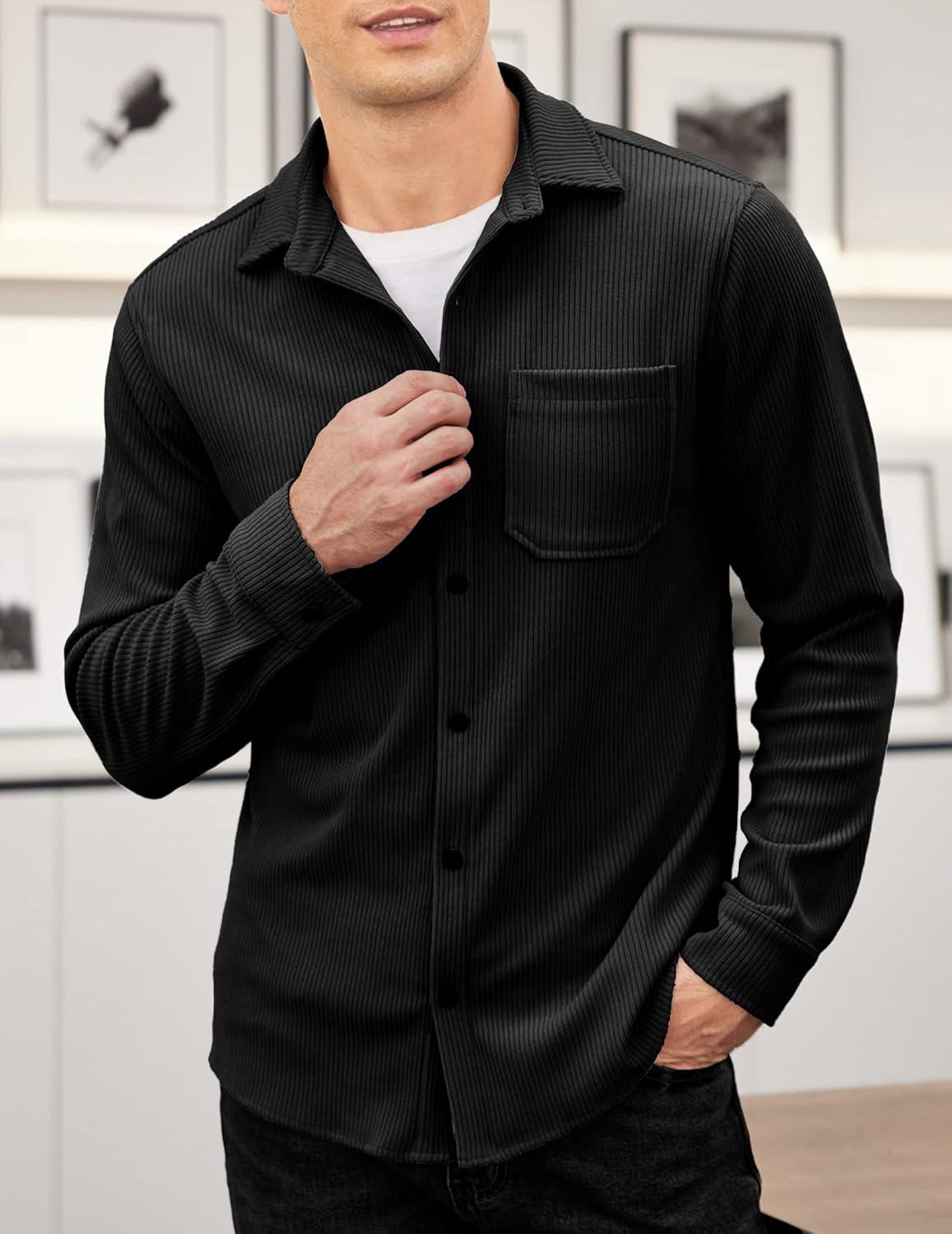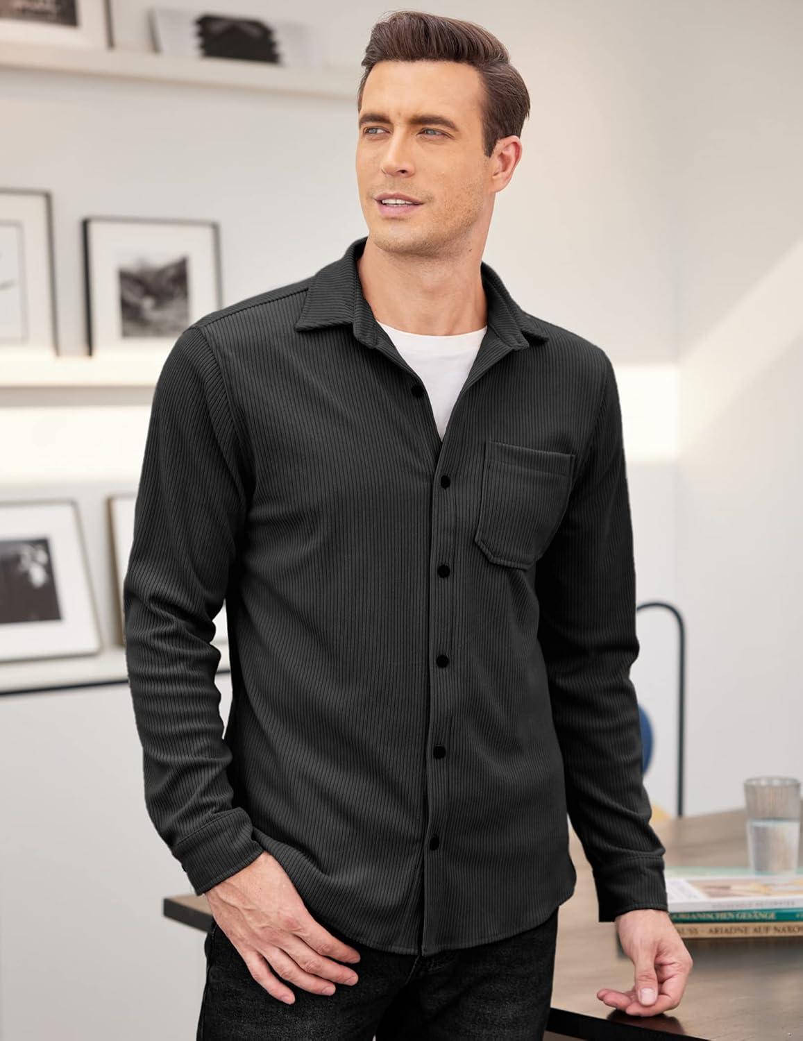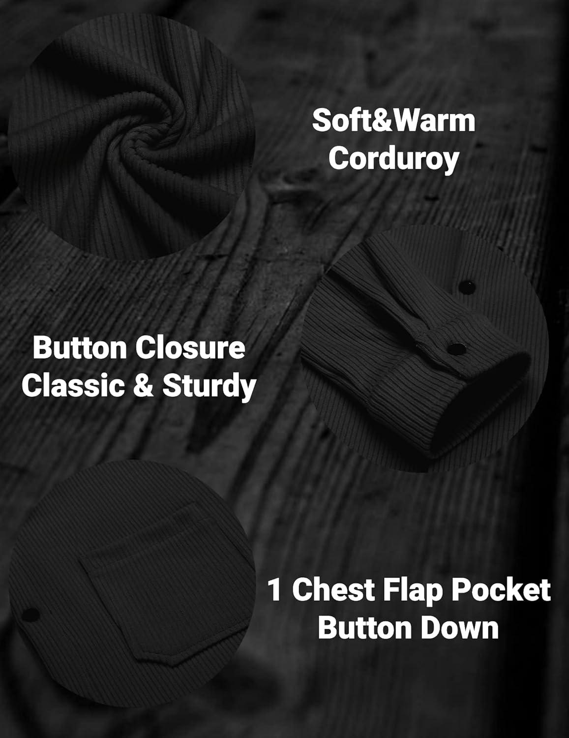 COOFANDY Men's Corduroy Shirt Casual Shacket Long Sleeve Button Down Lightweight Jacket(Black)