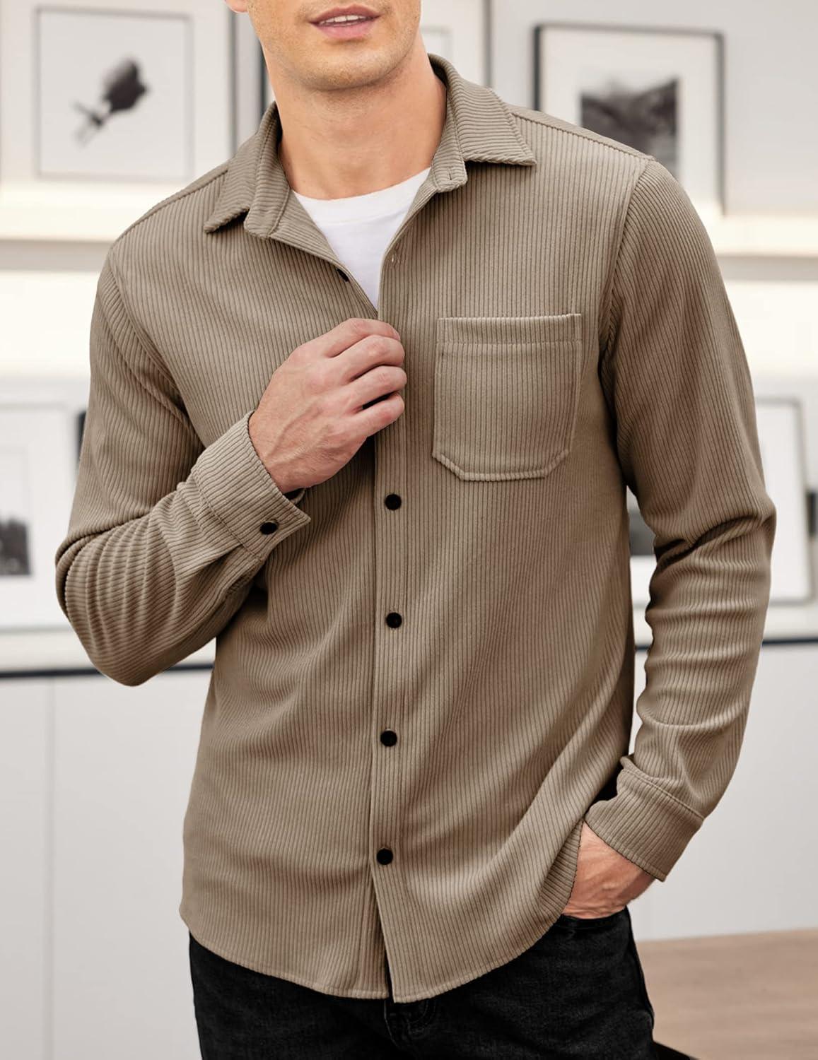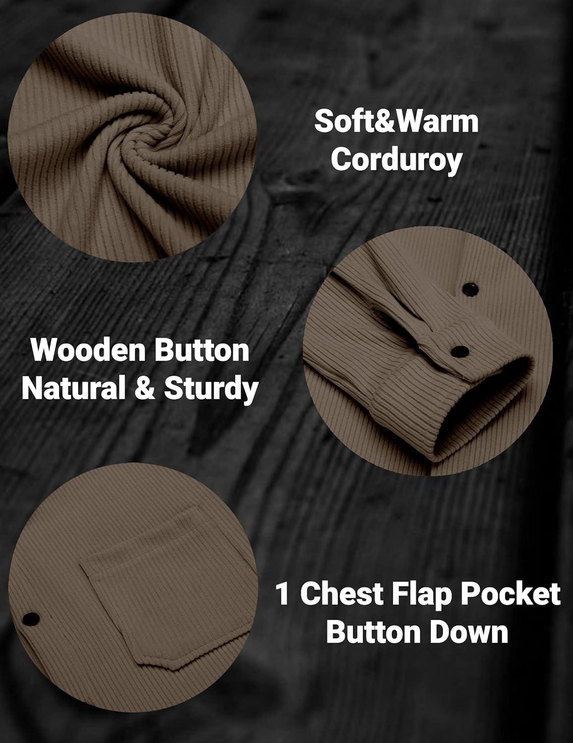 COOFANDY Men's Fashion Corduroy Shirt Jacket Slim Fit Button up Work Shirt With Two Flap Pockets
