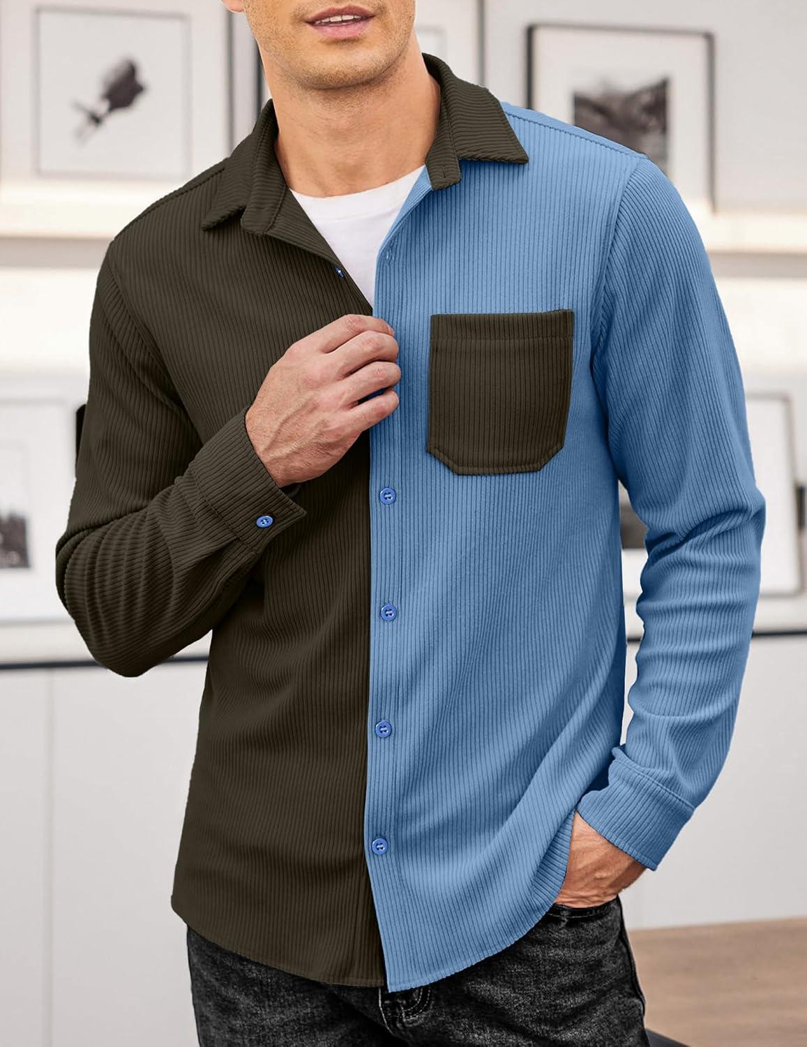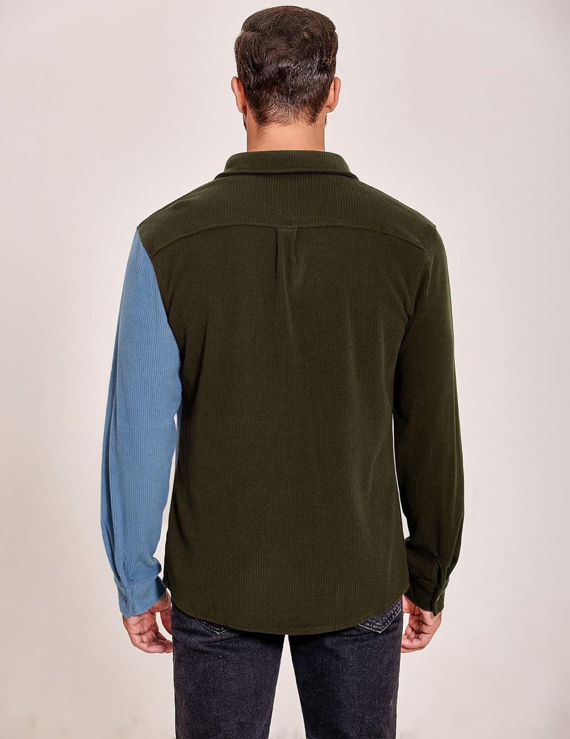 COOFANDY Men's Corduroy Shirt Casual Shacket Long Sleeve Button Down Lightweight Jacket(Color Block - Green)