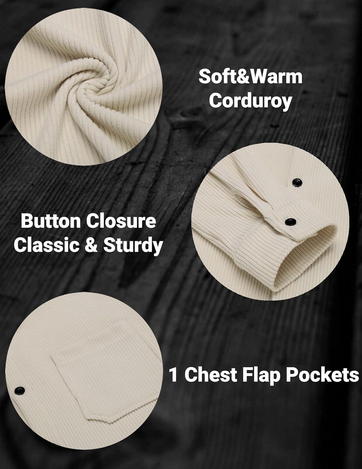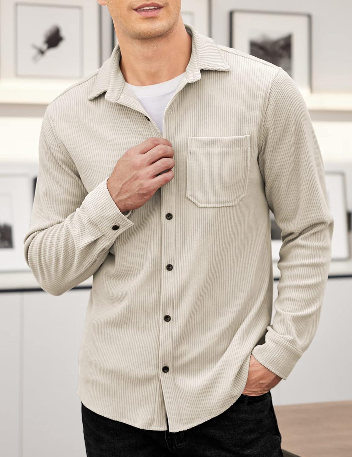 COOFANDY Men's Fashion Corduroy Shirt Jacket Slim Fit Button up Work Shirt With Two Flap Pockets