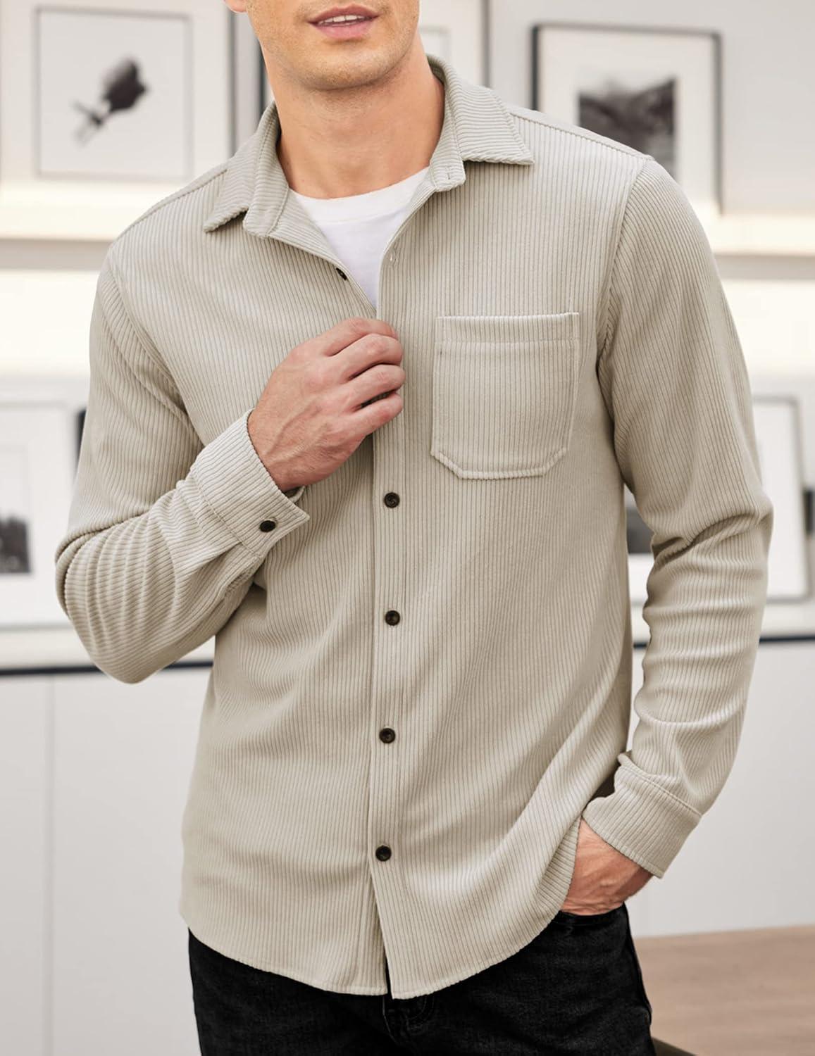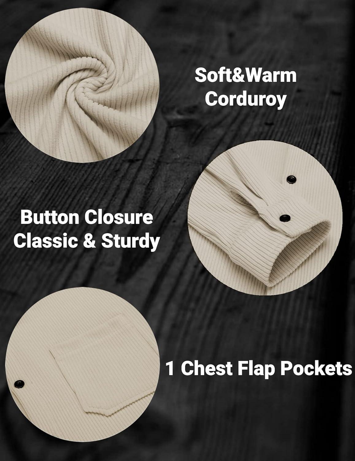 COOFANDY Men's Fashion Corduroy Shirt Jacket Slim Fit Button up Work Shirt With Two Flap Pockets