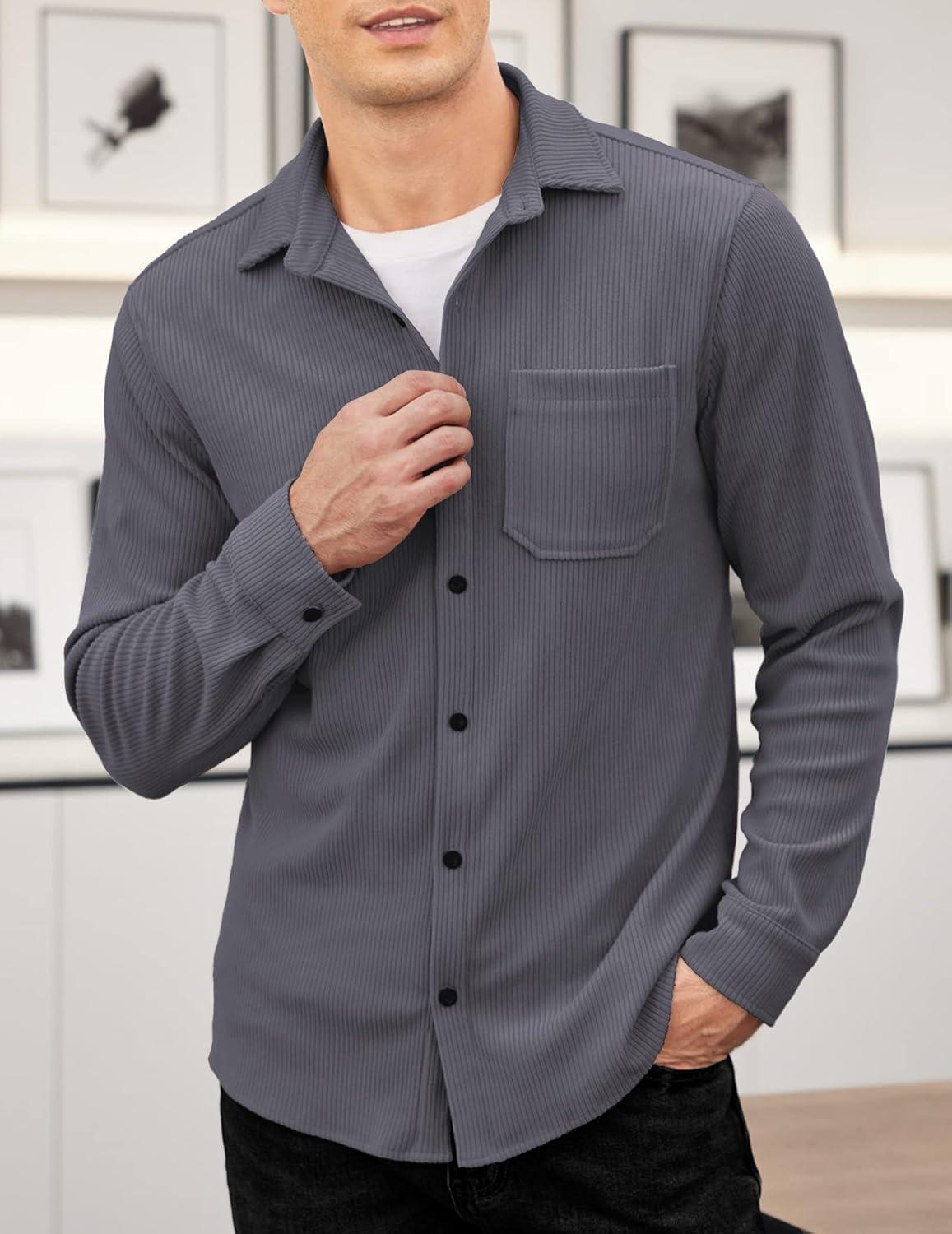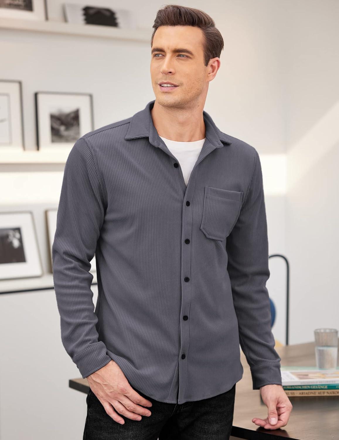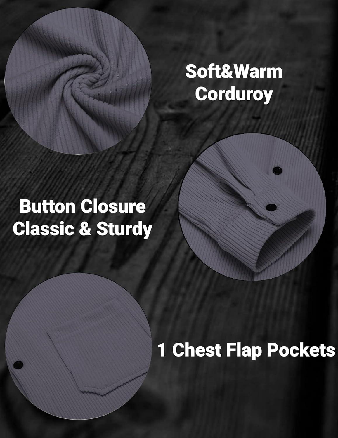 COOFANDY Men's Fashion Corduroy Shirt Jacket Slim Fit Button up Work Shirt With Two Flap Pockets