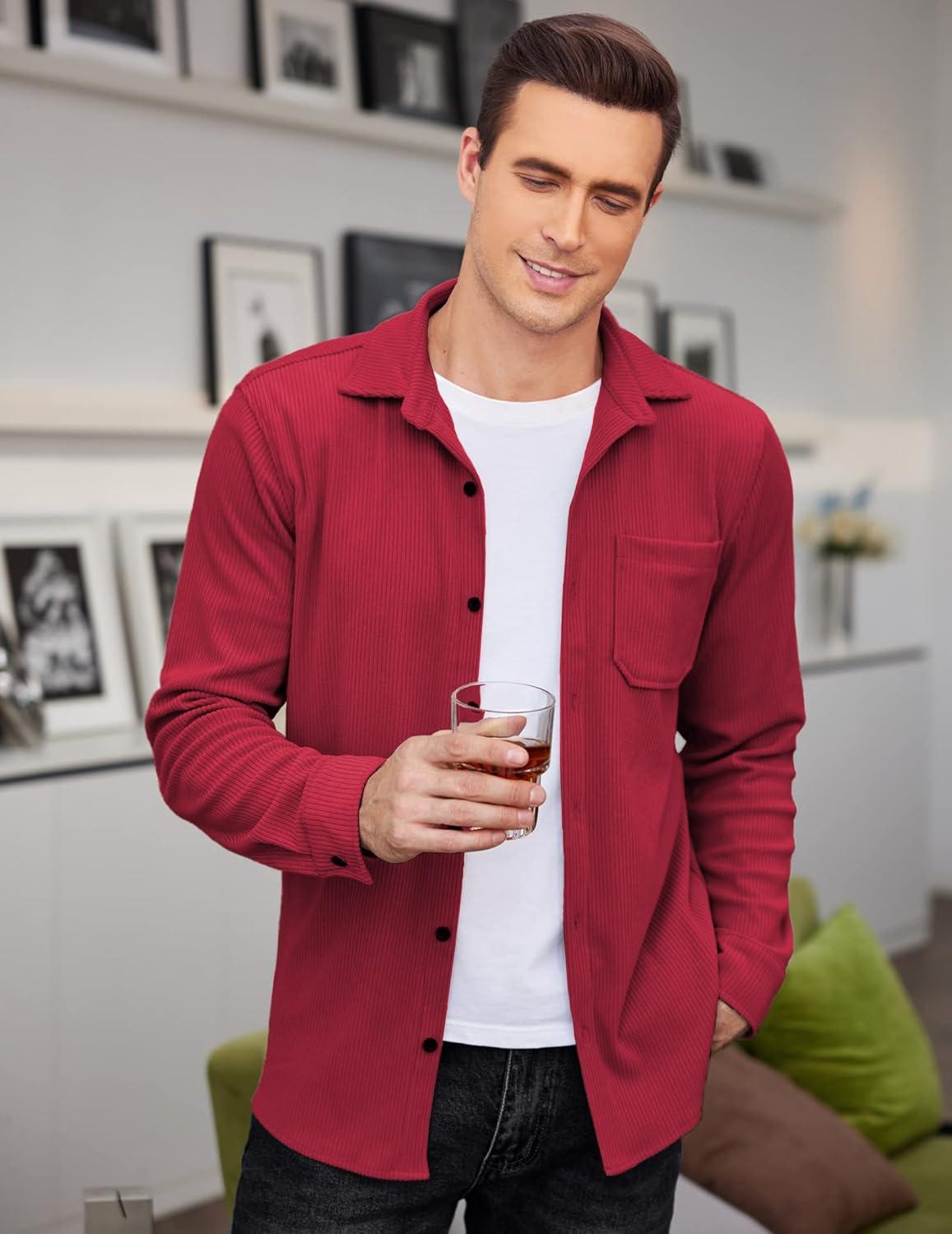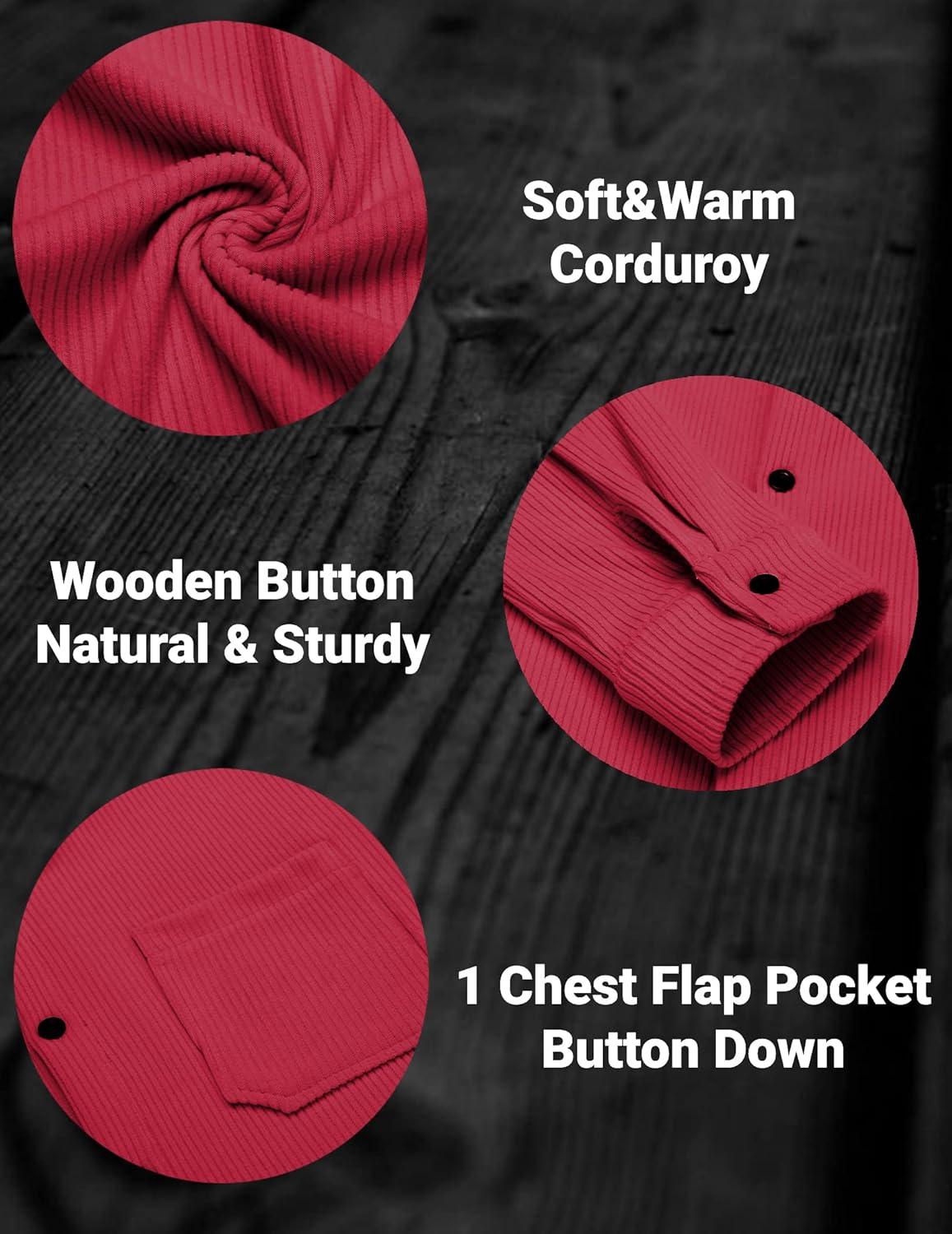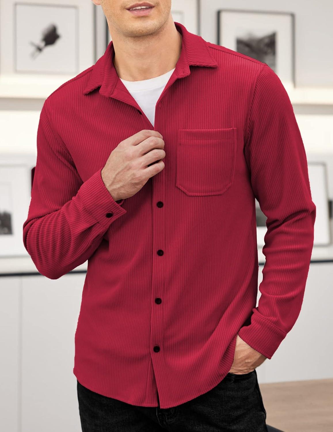 COOFANDY Men's Corduroy Shirt Casual Shacket Long Sleeve Button Down Lightweight Jacket(Red)
