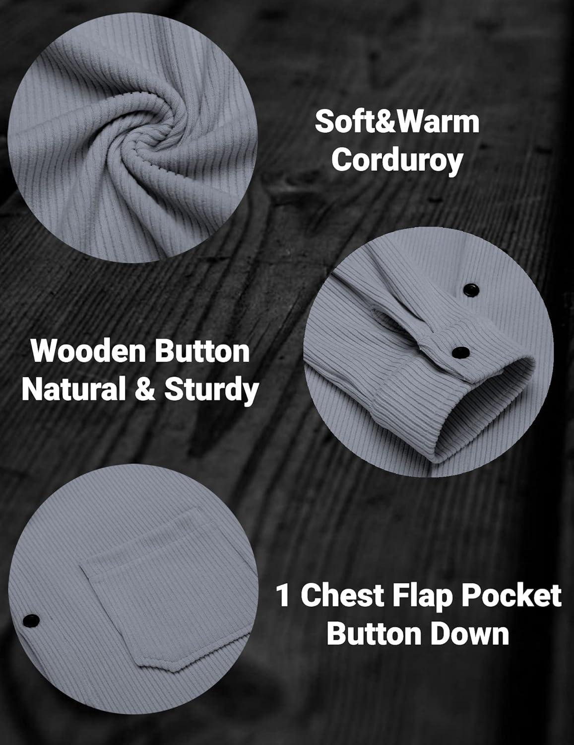 COOFANDY Men's Fashion Corduroy Shirt Jacket Slim Fit Button up Work Shirt With Two Flap Pockets