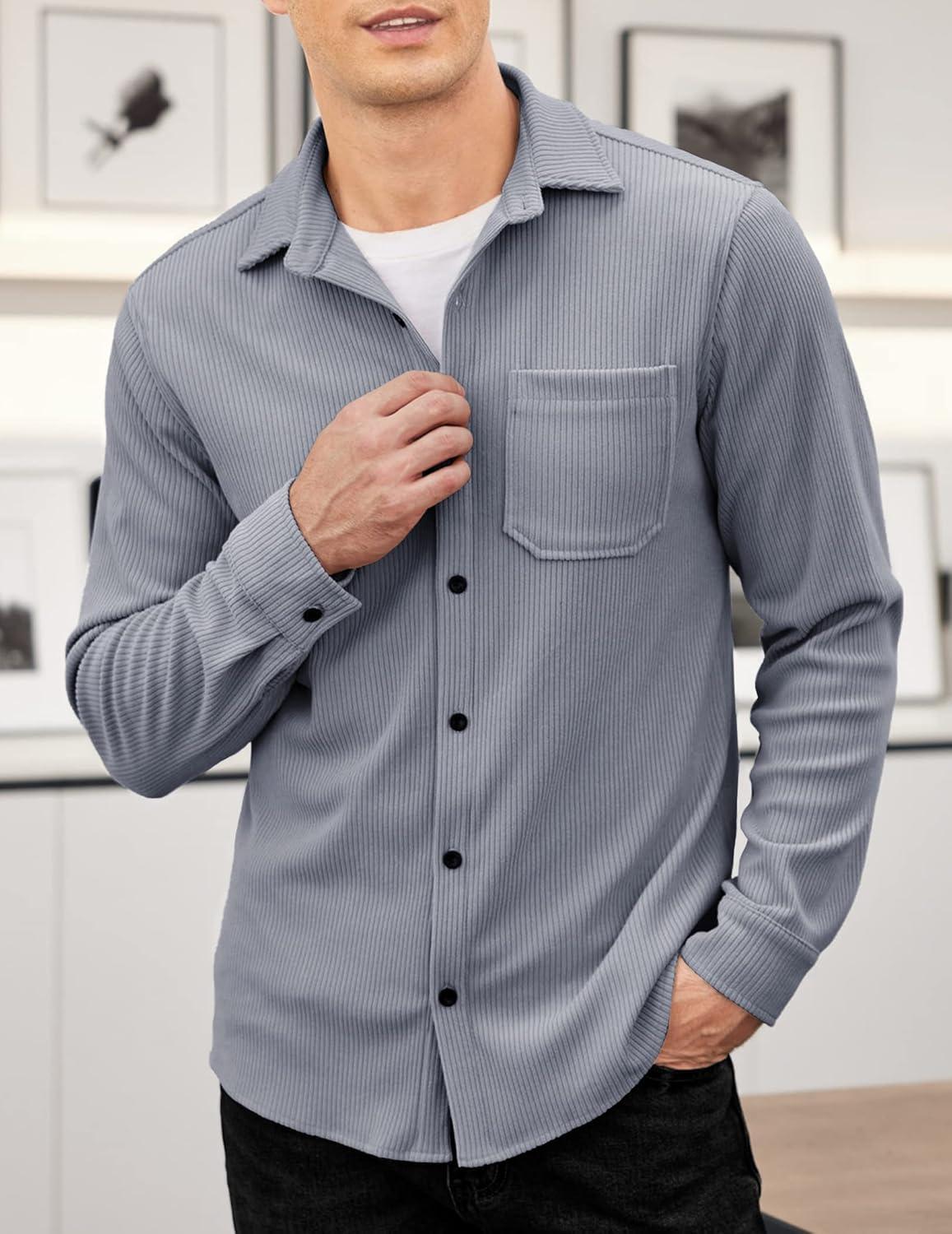 COOFANDY Men’s Corduroy Shirt Casual Shacket Long Sleeve Button Down Lightweight Jacket(Variegated Grey)