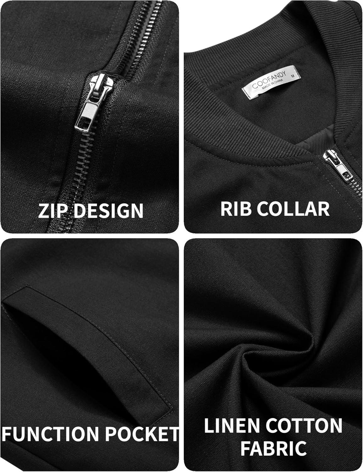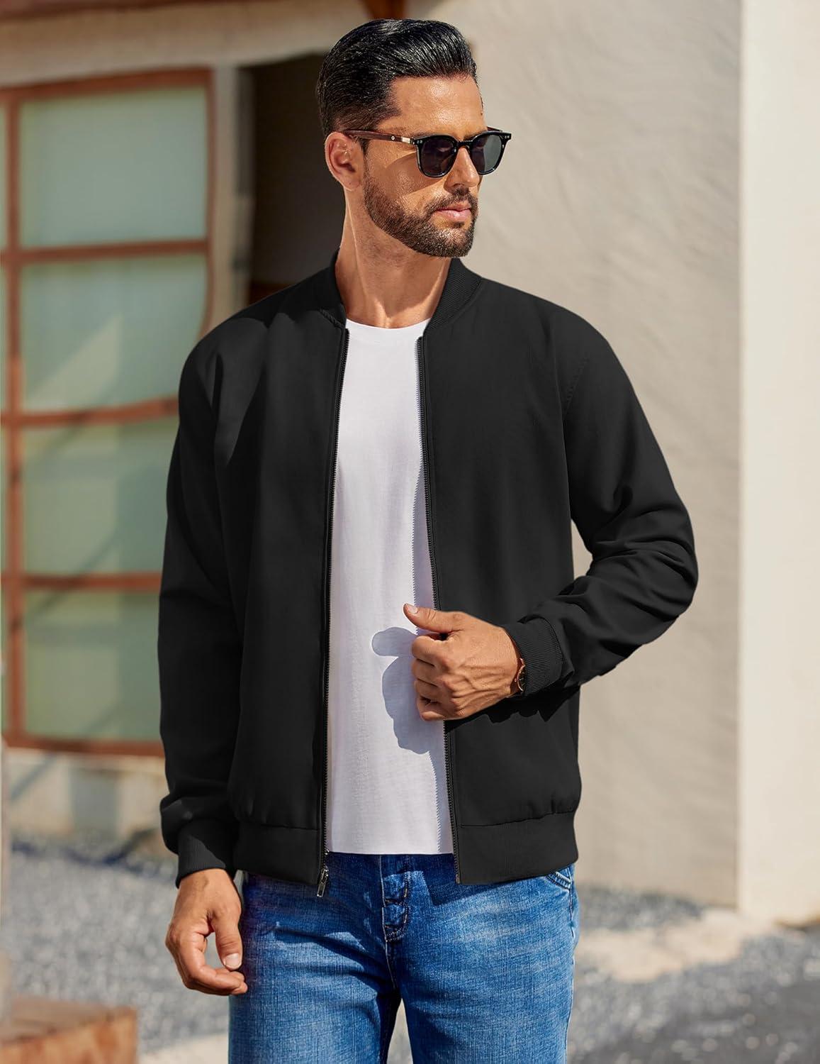 COOFANDY Men's Cotton Bomber Jacket Lightweight Flight Jackets Casual Softshell Varisty Jacket(Black)
