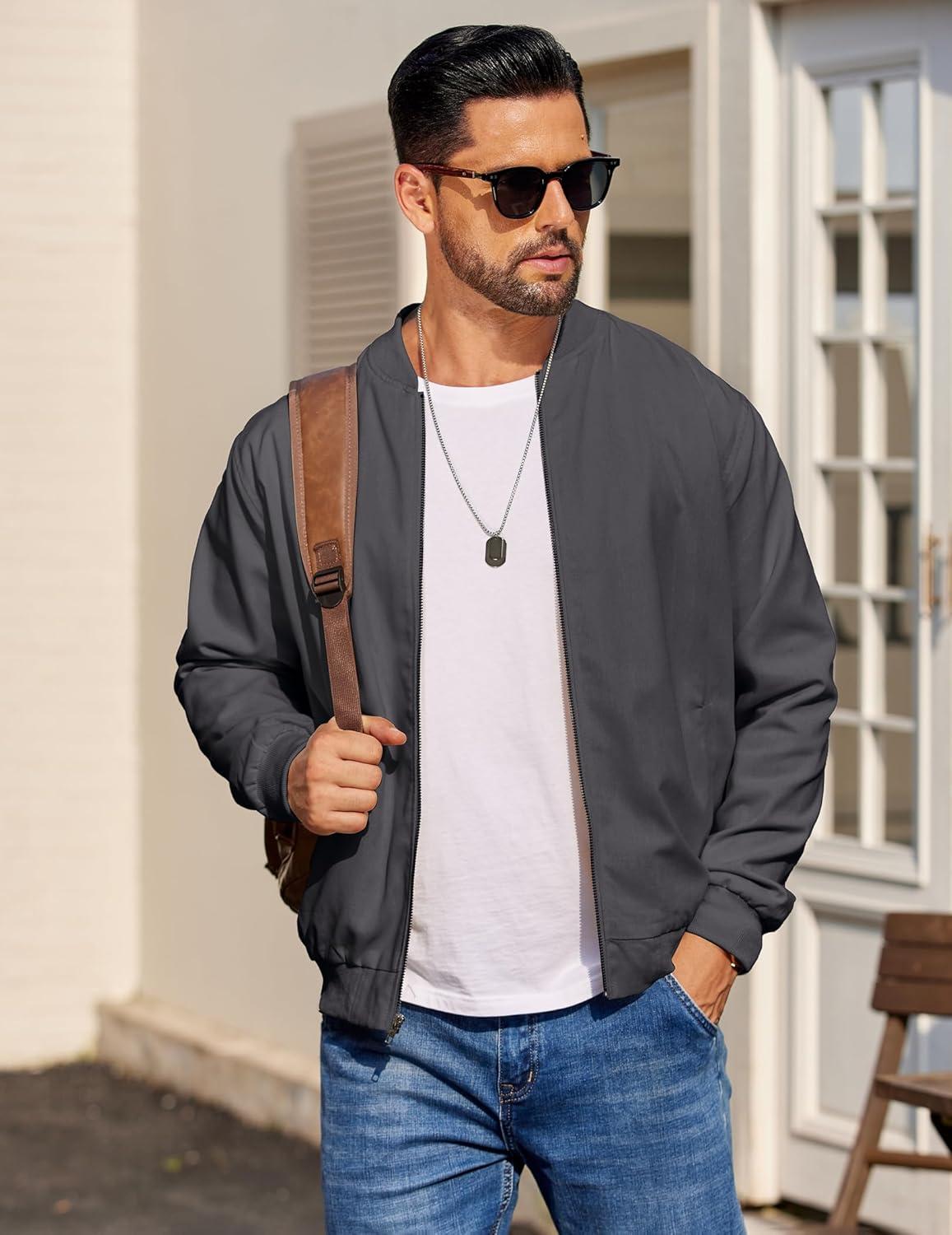 COOFANDY Men's Cotton Bomber Jacket Lightweight Flight Jackets Casual Softshell Varisty Jacket(Dark Grey)