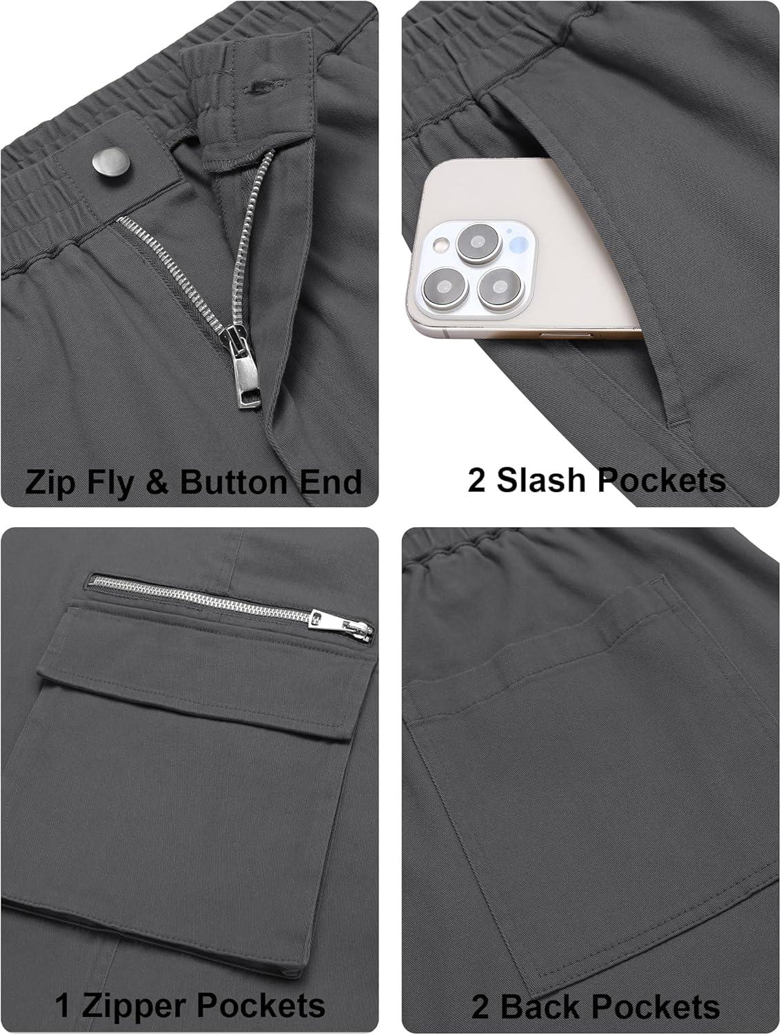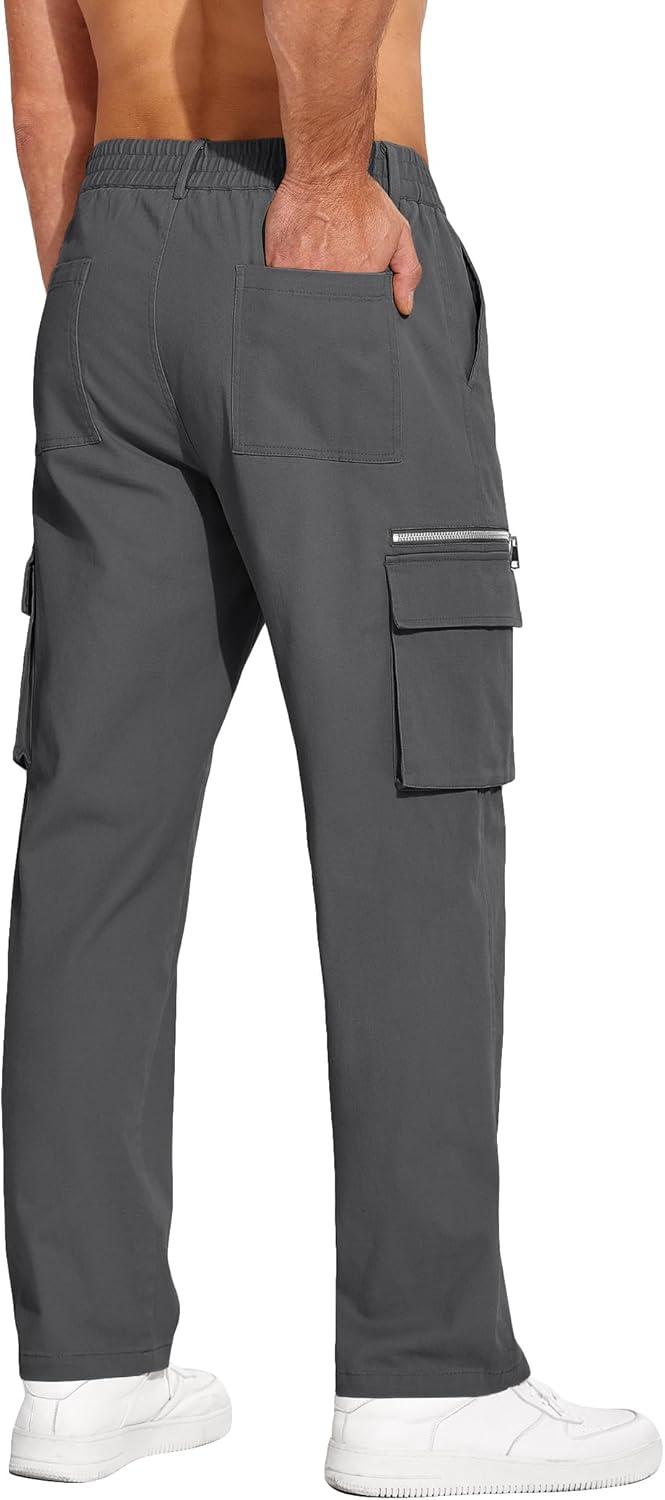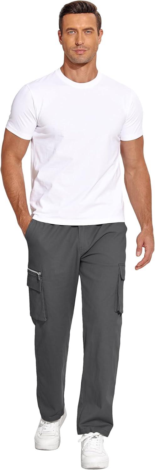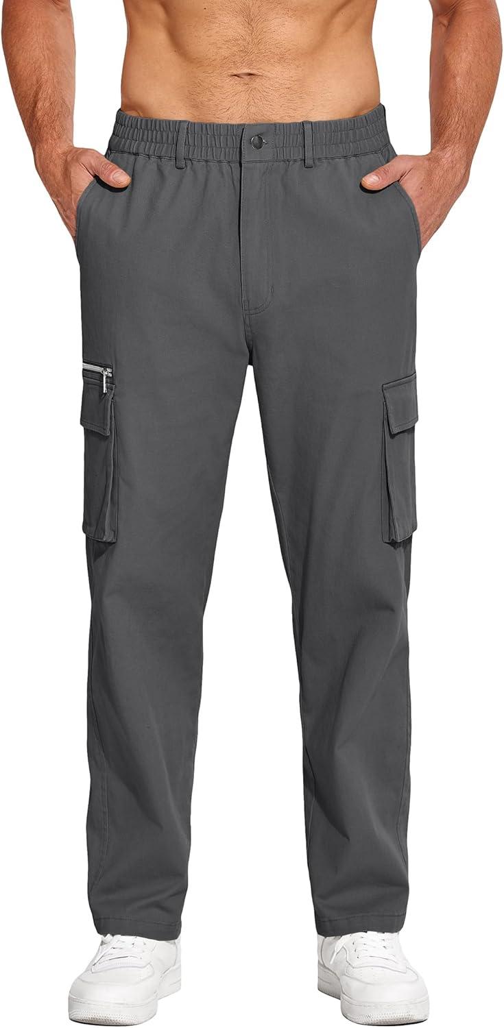 COOFANDY Men's Cotton Cargo Pants Relaxed Fit Elastic Waist Casual Pants Stretch Work Cargo Pant with Pockets(Dark Grey)