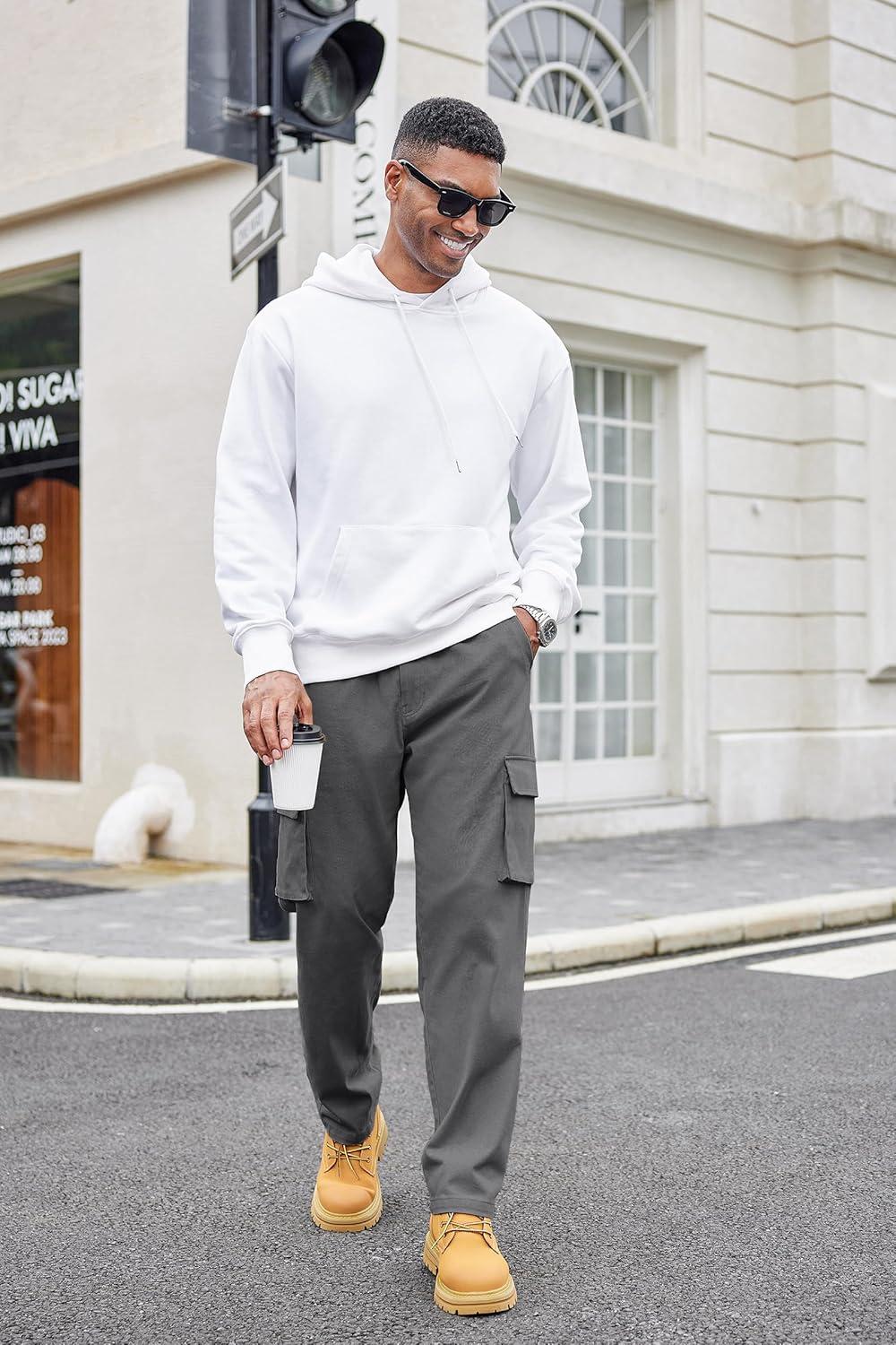 COOFANDY Men’s Cotton Cargo Pants Relaxed Fit Elastic Waist Casual Pants Stretch Work Cargo Pant with Pockets(Dark Grey)