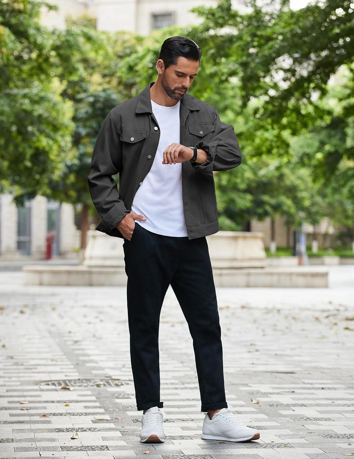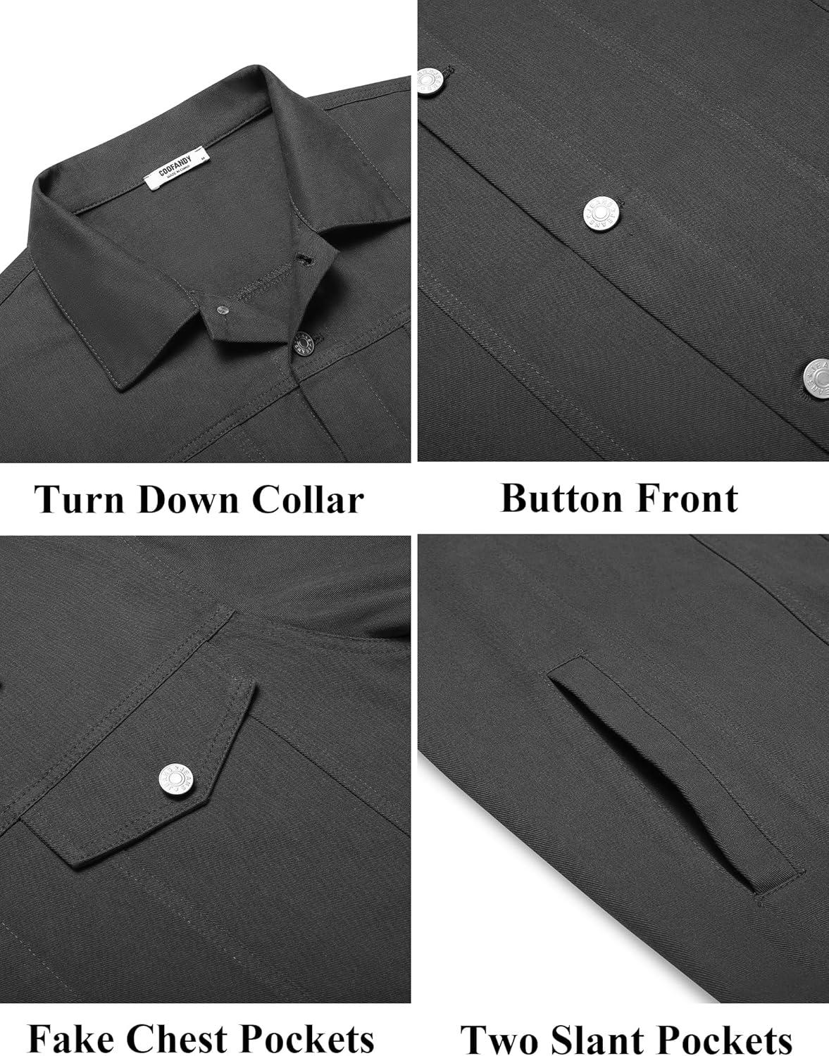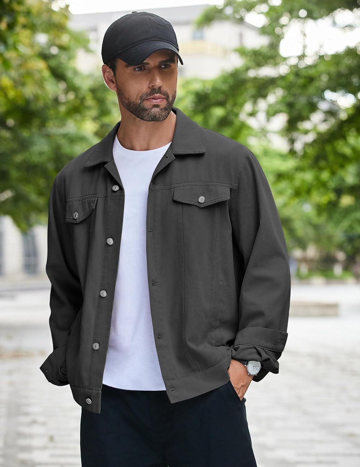 COOFANDY Men's Cotton Denim Jacket Lightweight Trucker Western Jackets Casual Fashion Jean Coat(Dark Grey)