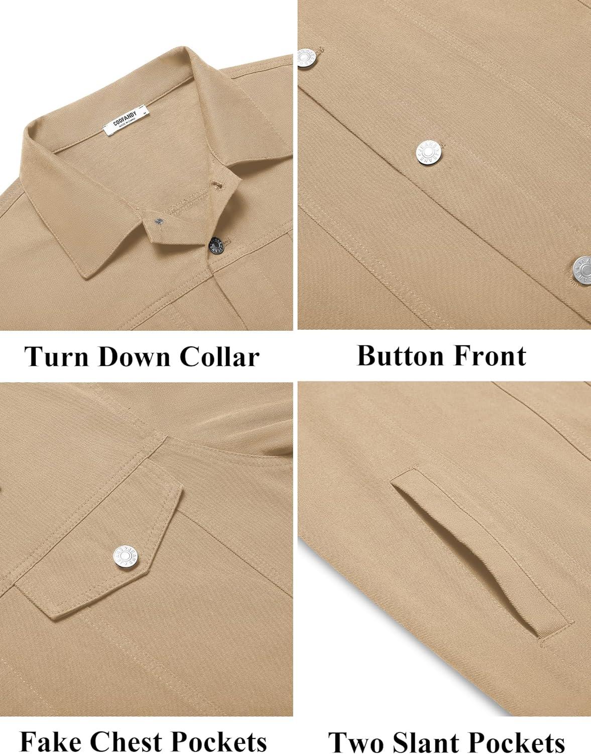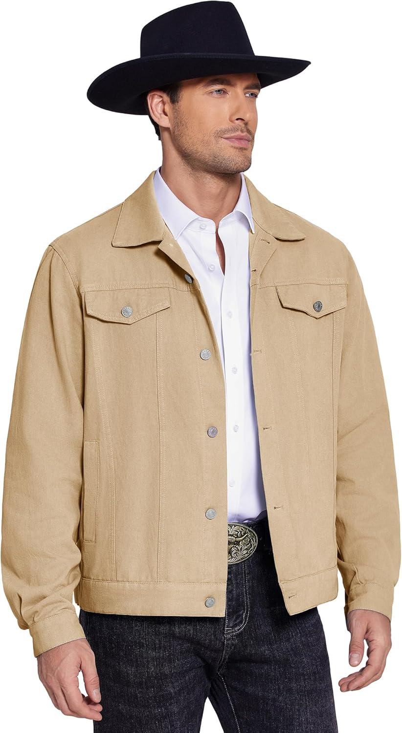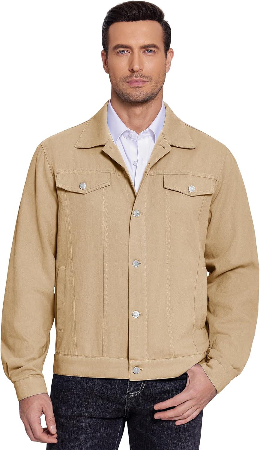 COOFANDY Men's Cotton Denim Jacket Lightweight Trucker Western Jackets Casual Fashion Jean Coat(Khaki)