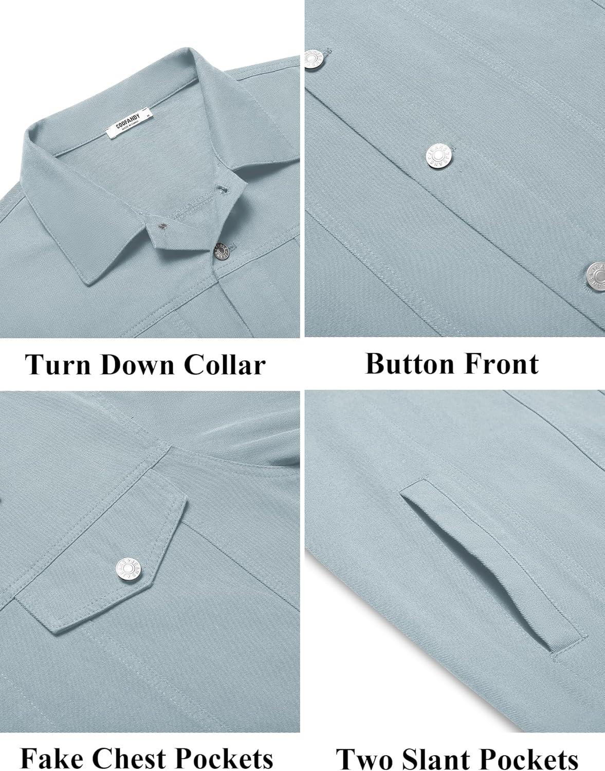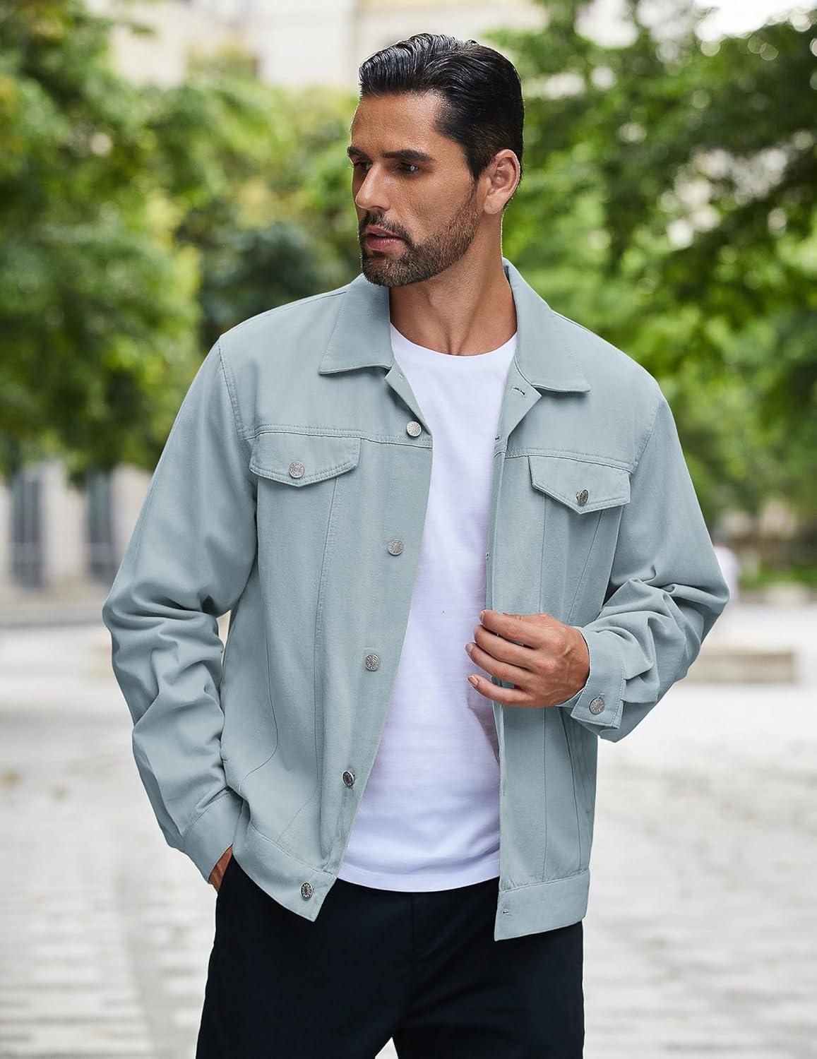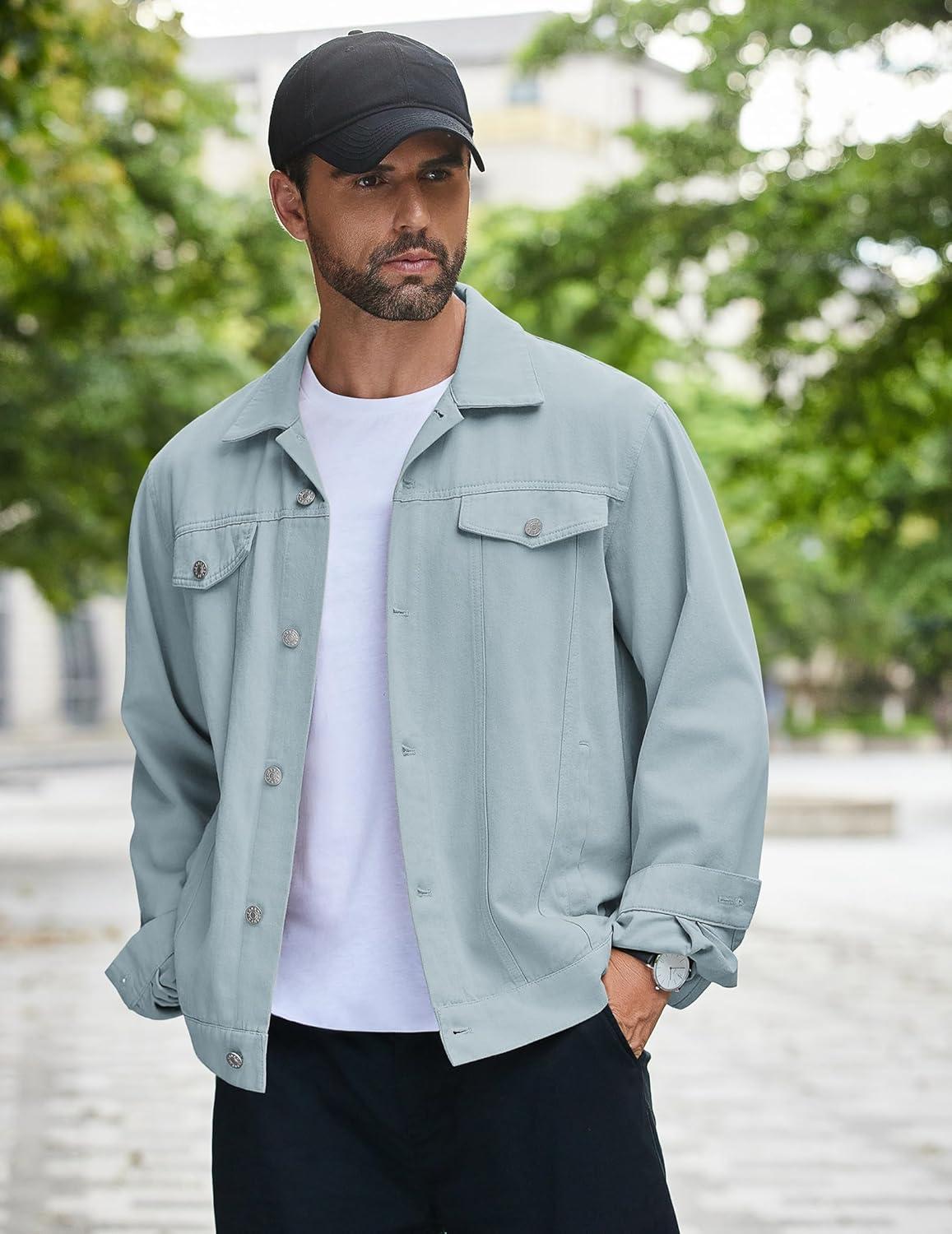 COOFANDY Men's Cotton Denim Jacket Lightweight Trucker Western Jackets Casual Fashion Jean Coat(Light Blue)