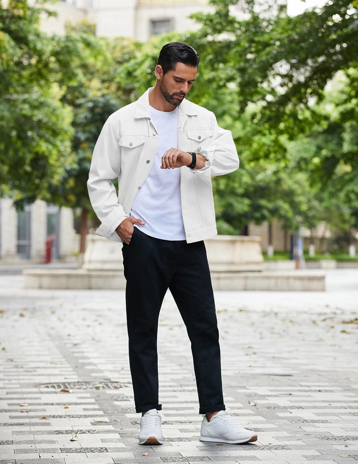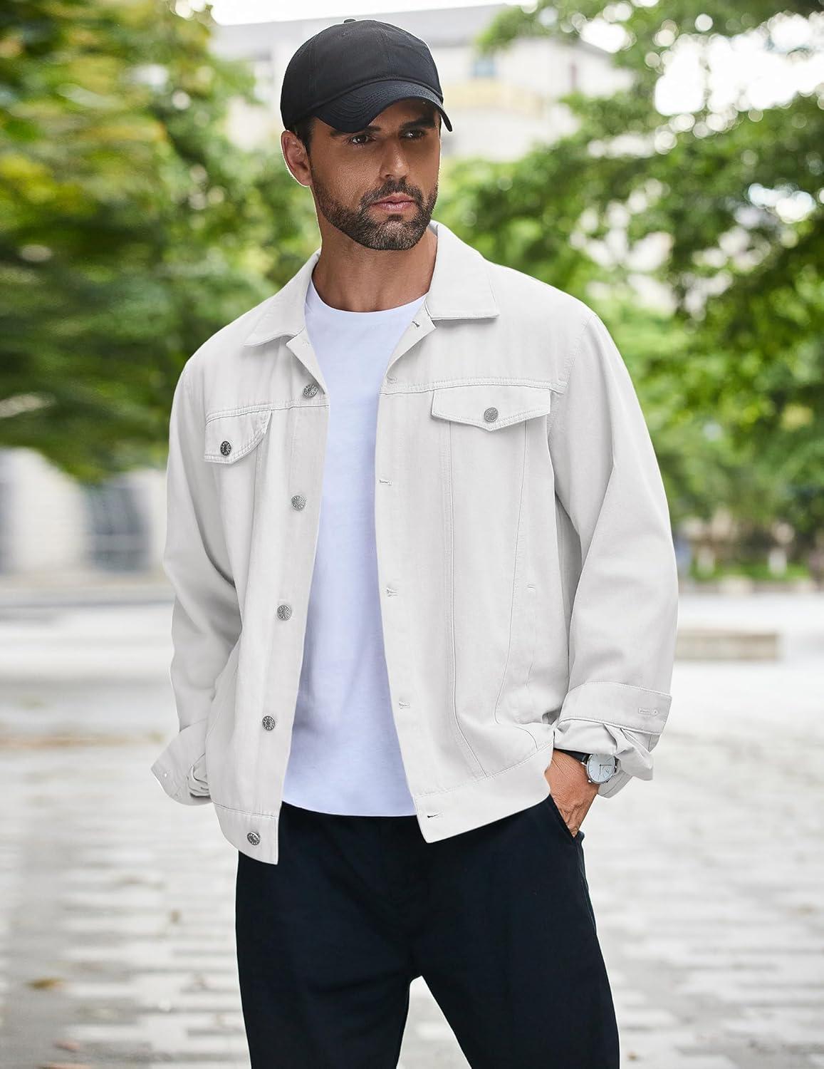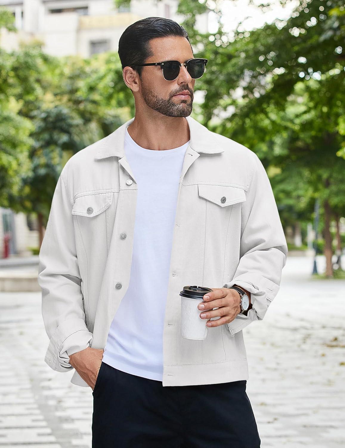 COOFANDY Men's Cotton Denim Jacket Lightweight Trucker Western Jackets Casual Fashion Jean Coat(White)