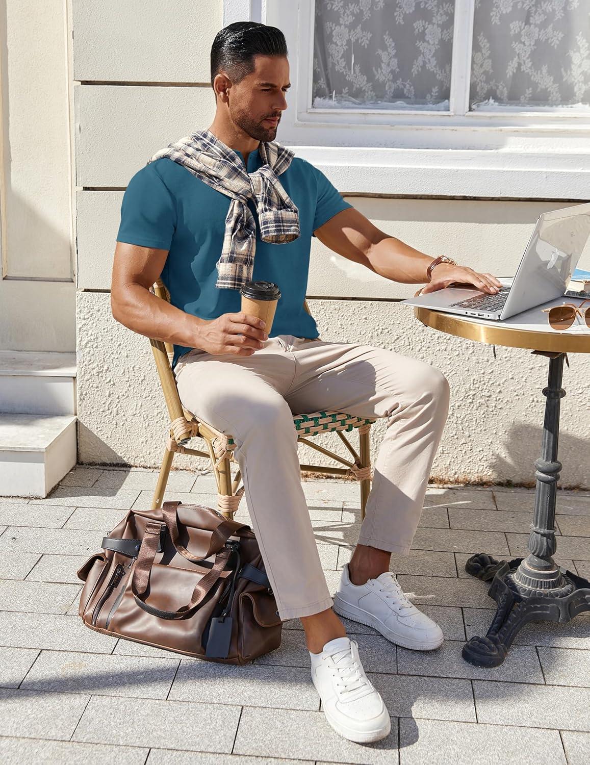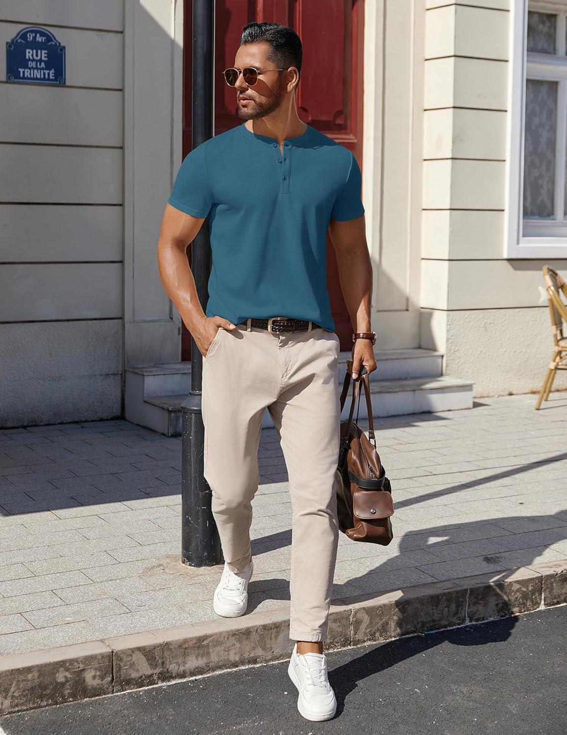 Don’t break the bank! Get the COOFANDY Mens Cotton Henley T-Shirts Short Sleeve Button Casual Basic Tees Work Shirts with Split Side(Grey Blue) you want at a price you can afford during our markdown sale.