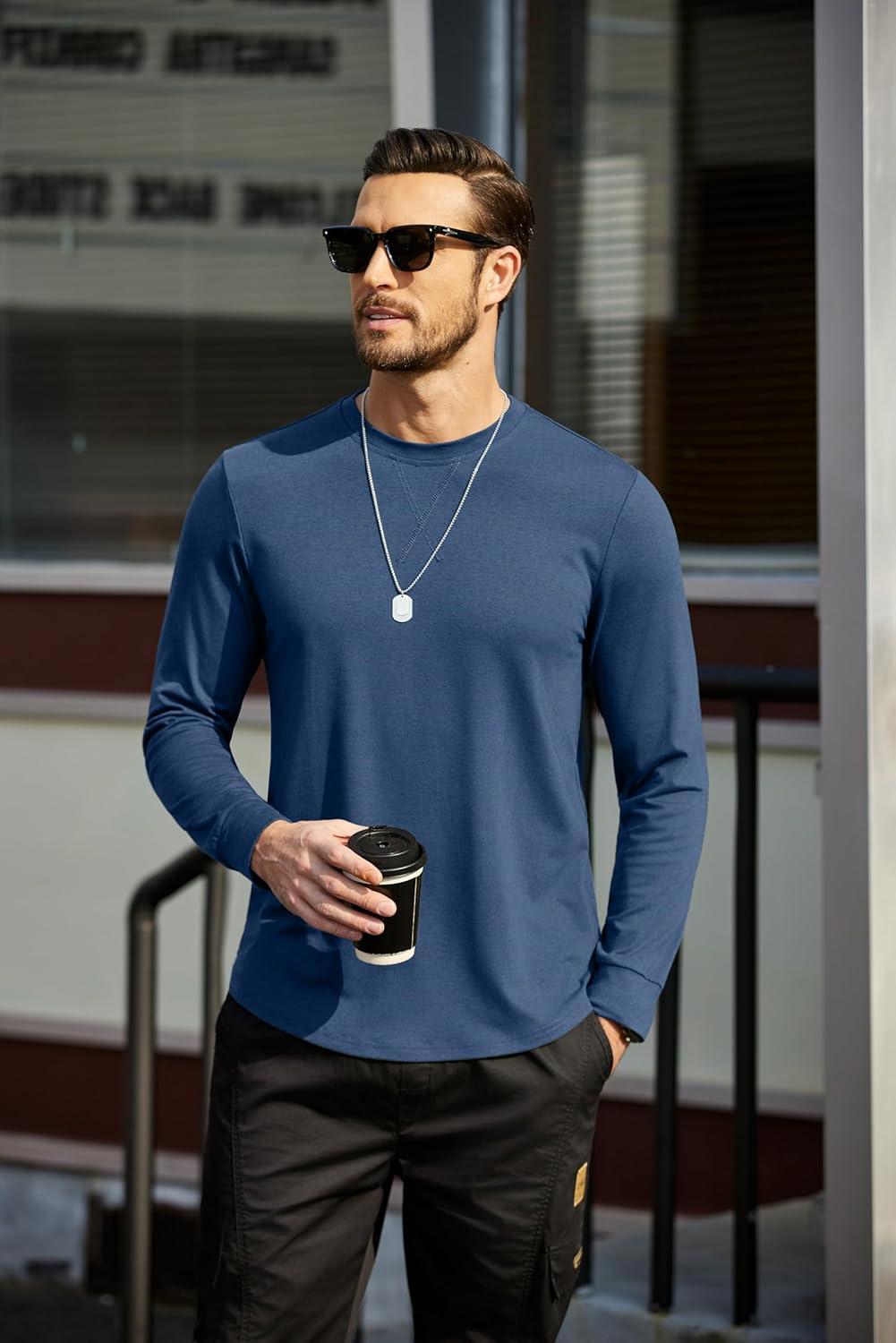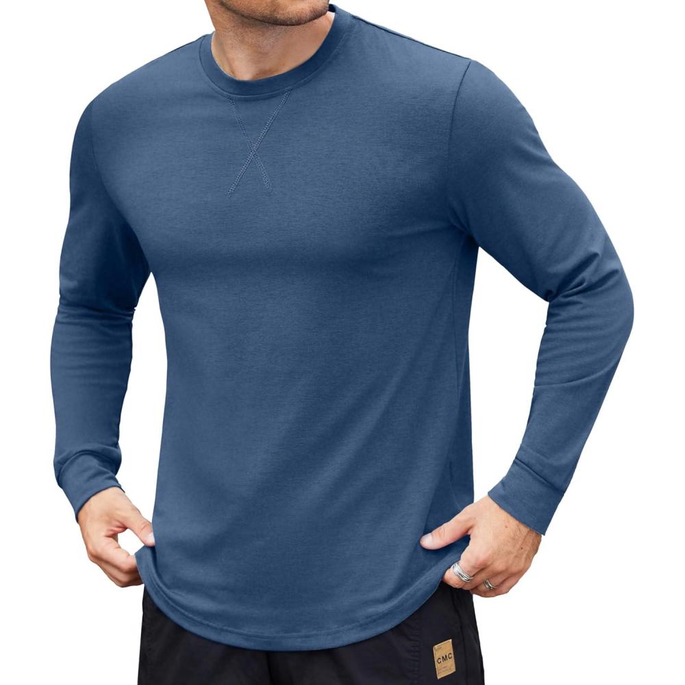 COOFANDY Mens Cotton Hipster Hip Hop Longline Crewneck T Shirts Casual Long Sleeve Tees Curved Hem Gym Shirts(One Piece- Grey)